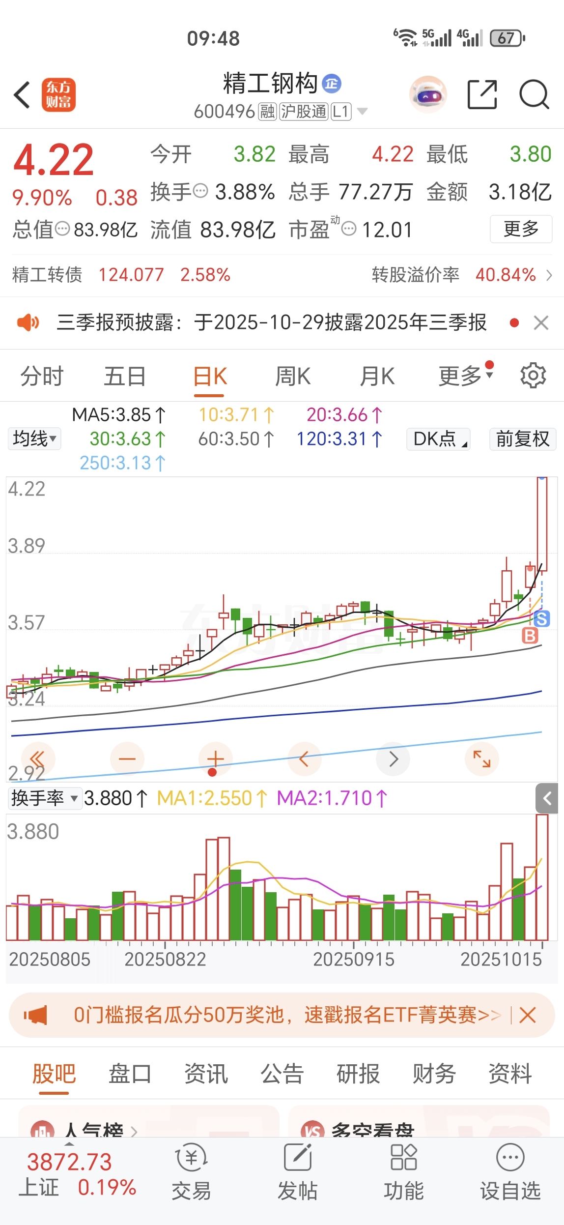 $精工钢构(SH600496)$ 好票不贪,T+1抓个板足够了
