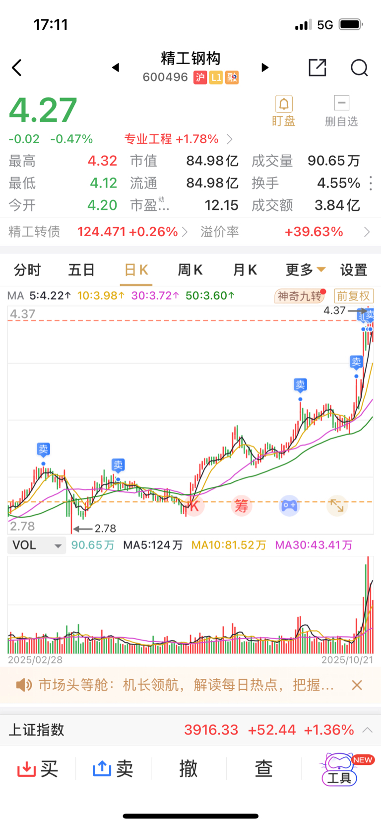 做股票就是左侧不断买入,右侧不断卖出,今天出完最后3万股,留下的发财