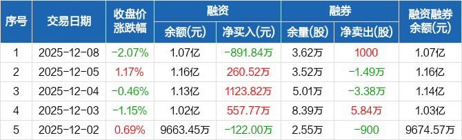 精工钢构:融资净偿还891.84万元,融资余额1.07亿元(12-08)