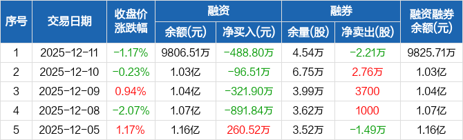 精工钢构:连续4日融资净偿还累计1799.05万元(12-11)