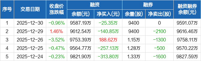 精工钢构:融资净偿还25.35万元,融资余额9587.19万元(12-30)