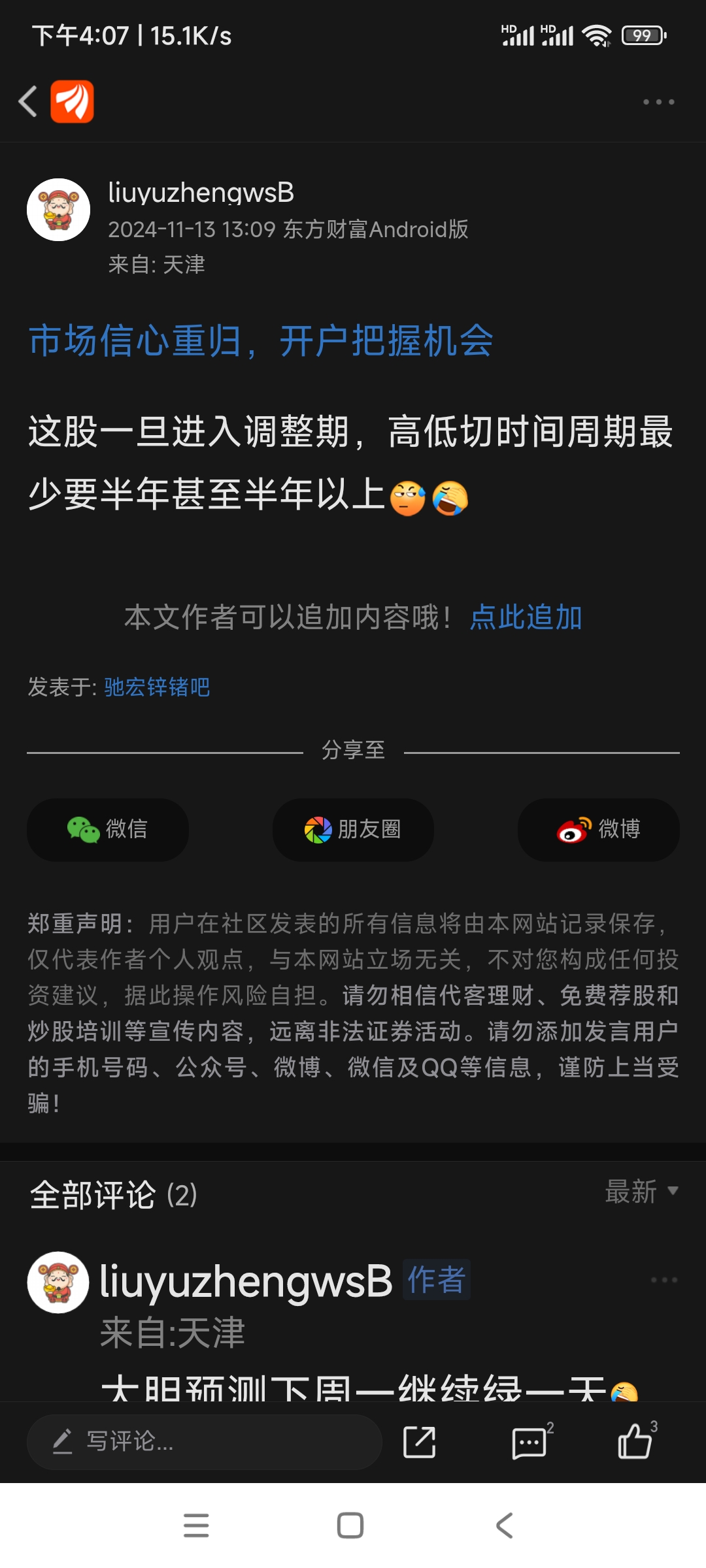 温馨提示: 1.根据《证券法》规定,禁止编造、传播虚假信息或者误导性信息,扰乱证券市场;2.用户在本社区发表的所有资料、言论等仅代表个人观点,与本网站立场无关,不对您构成任何投资建议。用户应基于自己的独立判断,自行决定证券投资并承担相应风险。《东方财富社区管理规定》