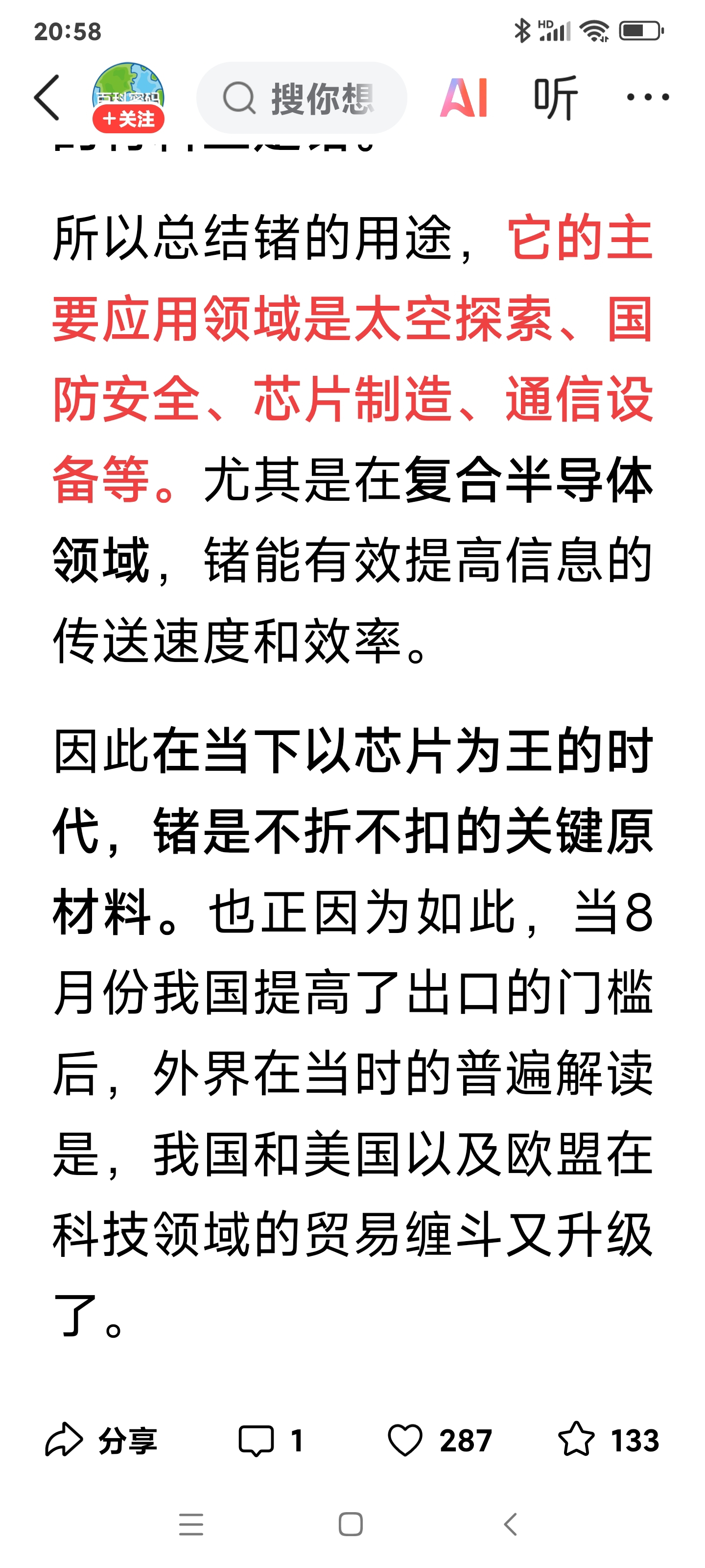 $驰宏锌锗(SH600497)$ 今天半导体板块大涨,锗与芯片关系密切。