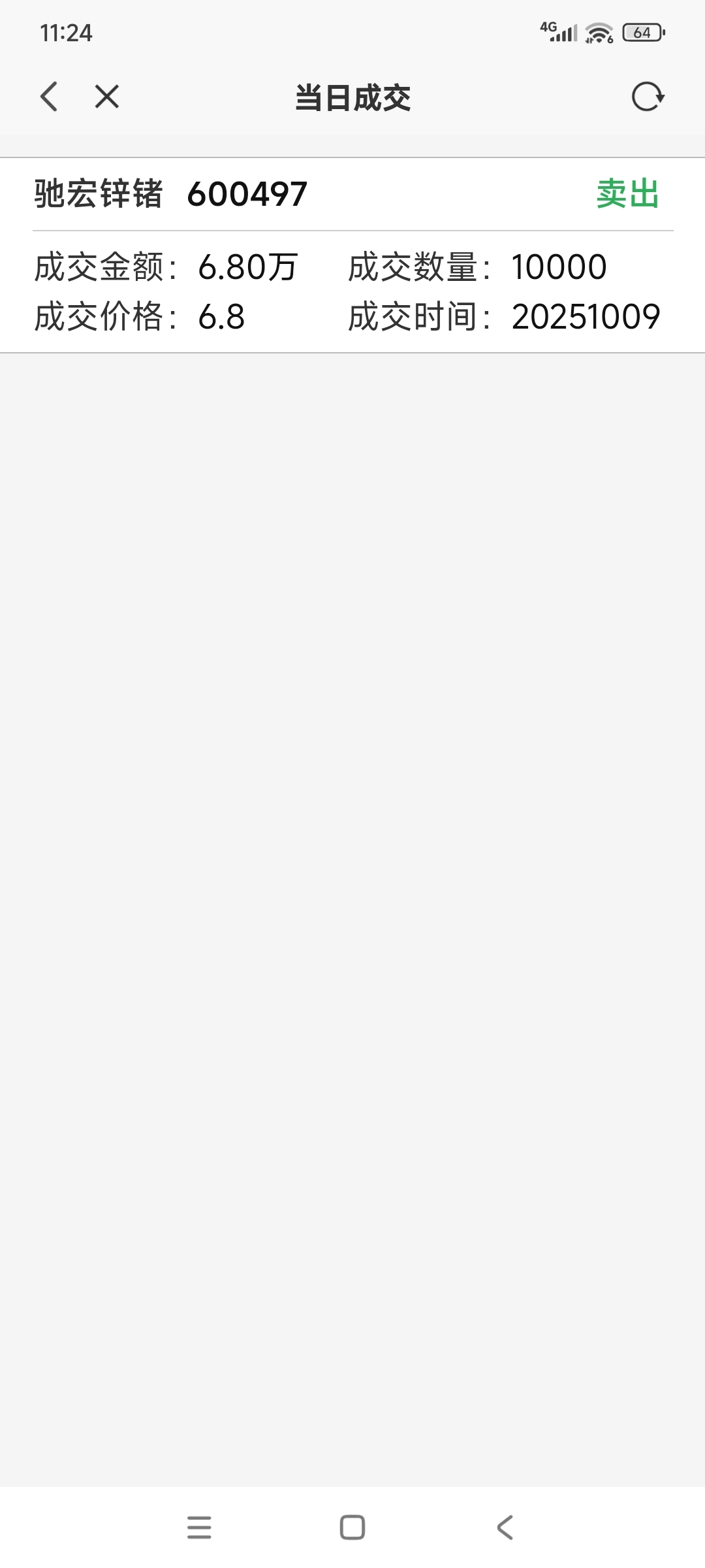 $驰宏锌锗(SH600497)$ 开盘挂单,成交了!