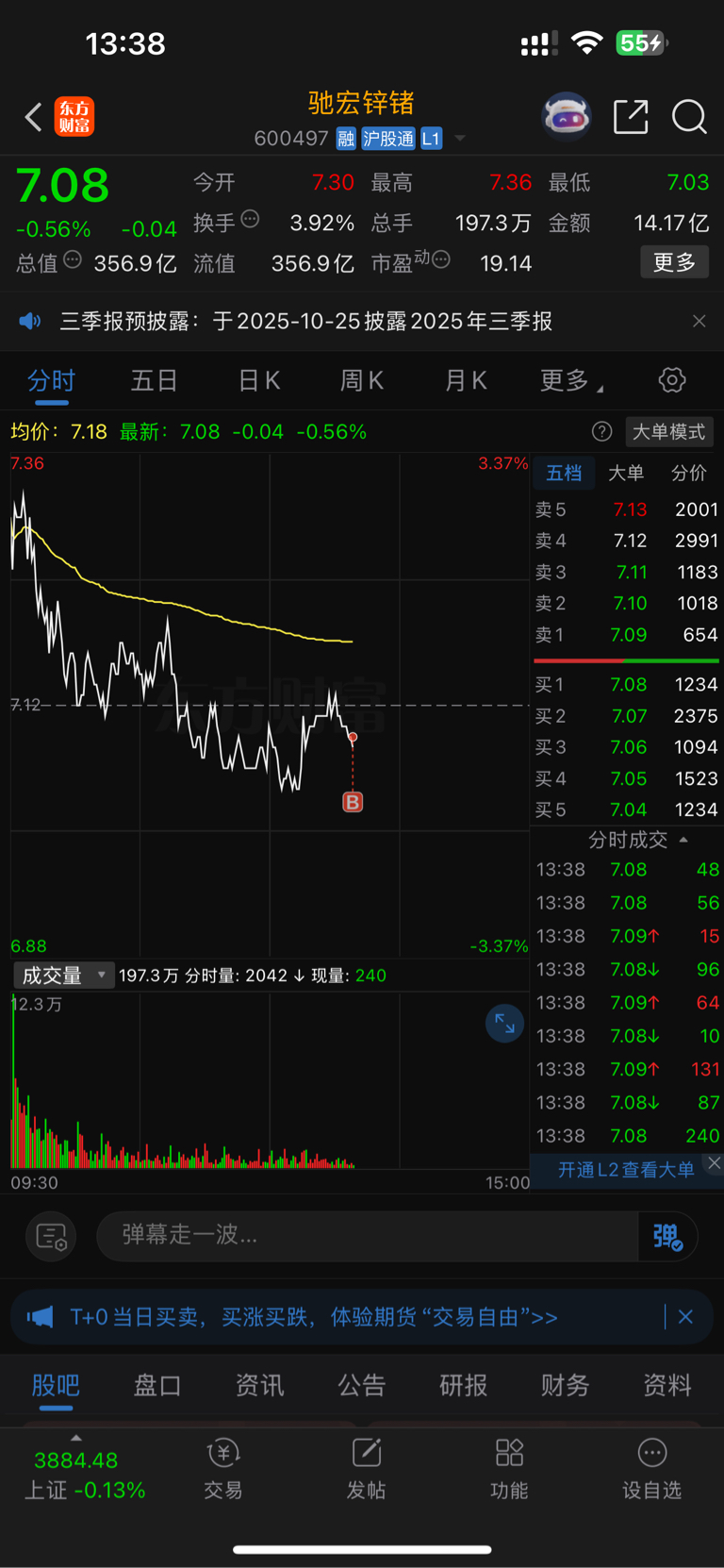 $驰宏锌锗(SH600497)$ 加仓了两百股