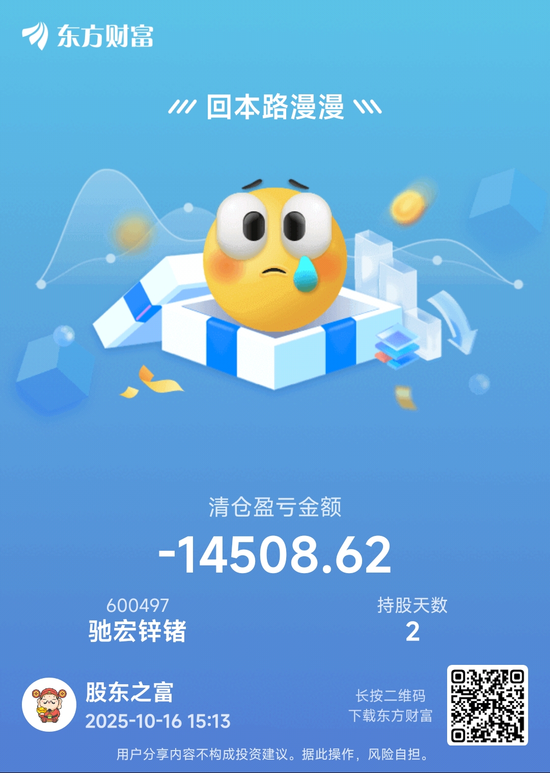 温馨提示: 1.根据《证券法》规定,禁止编造、传播虚假信息或者误导性信息,扰乱证券市场;2.用户在本社区发表的所有资料、言论等仅代表个人观点,与本网站立场无关,不对您构成任何投资建议。用户应基于自己的独立判断,自行决定证券投资并承担相应风险。《东方财富社区管理规定》