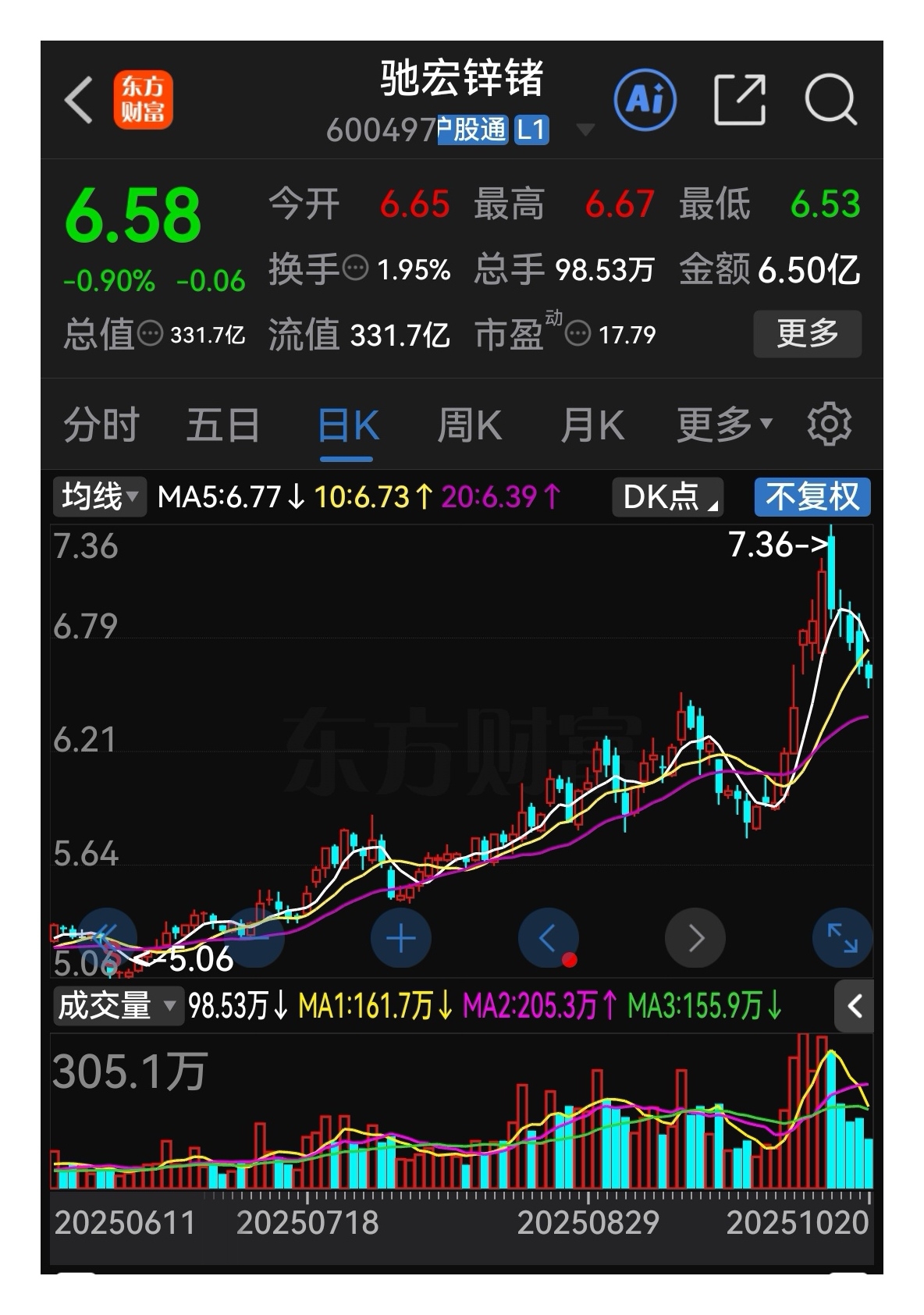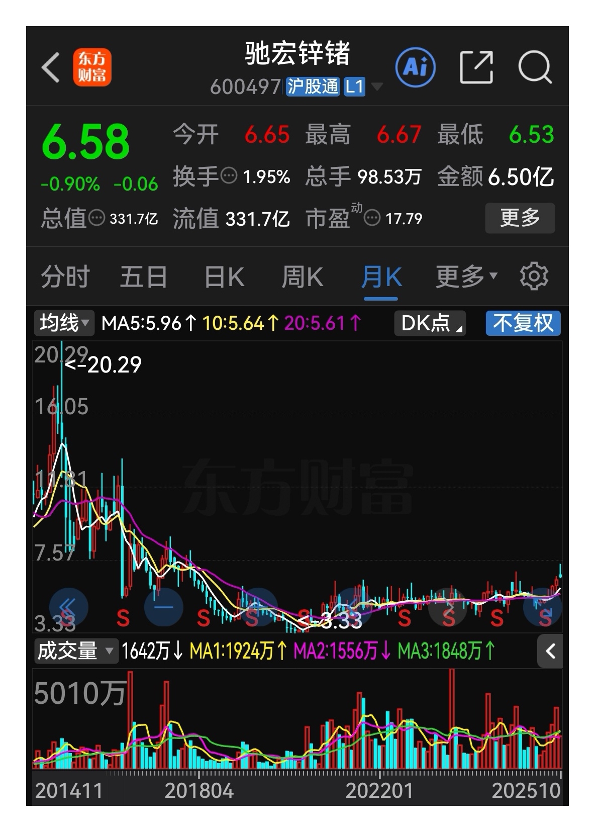 $驰宏锌锗(SH600497)$ 技术解盘:日线调整清洗浮筹已近尾声,月线横有多长,竖有多高,龙抬头。有色金属小金属涨价,业绩增长净利润增长,随时都可能涨停板!是金子总会发光!第一目标8元!第二目标12元!