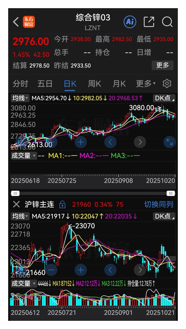 锌期货外围涨!国内跌!比较一下: