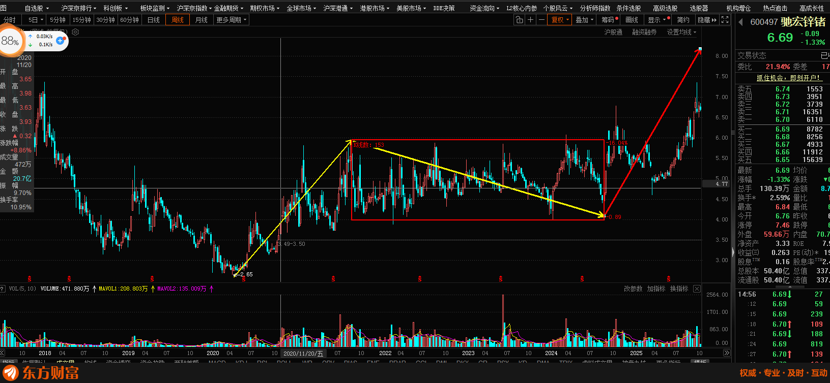 周线历时四年的横盘震荡,终于突破了!周线主升浪即将来临?我看很有可能