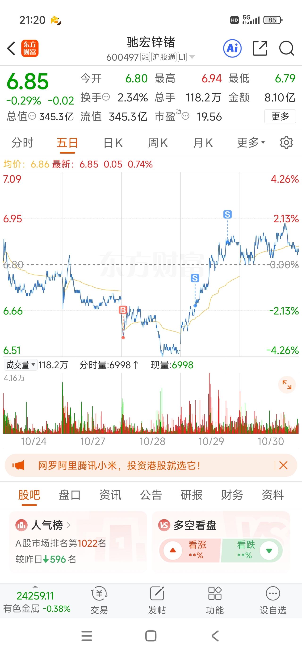 $驰宏锌锗(SH600497)$ 全清,下个月跌破6.4再进