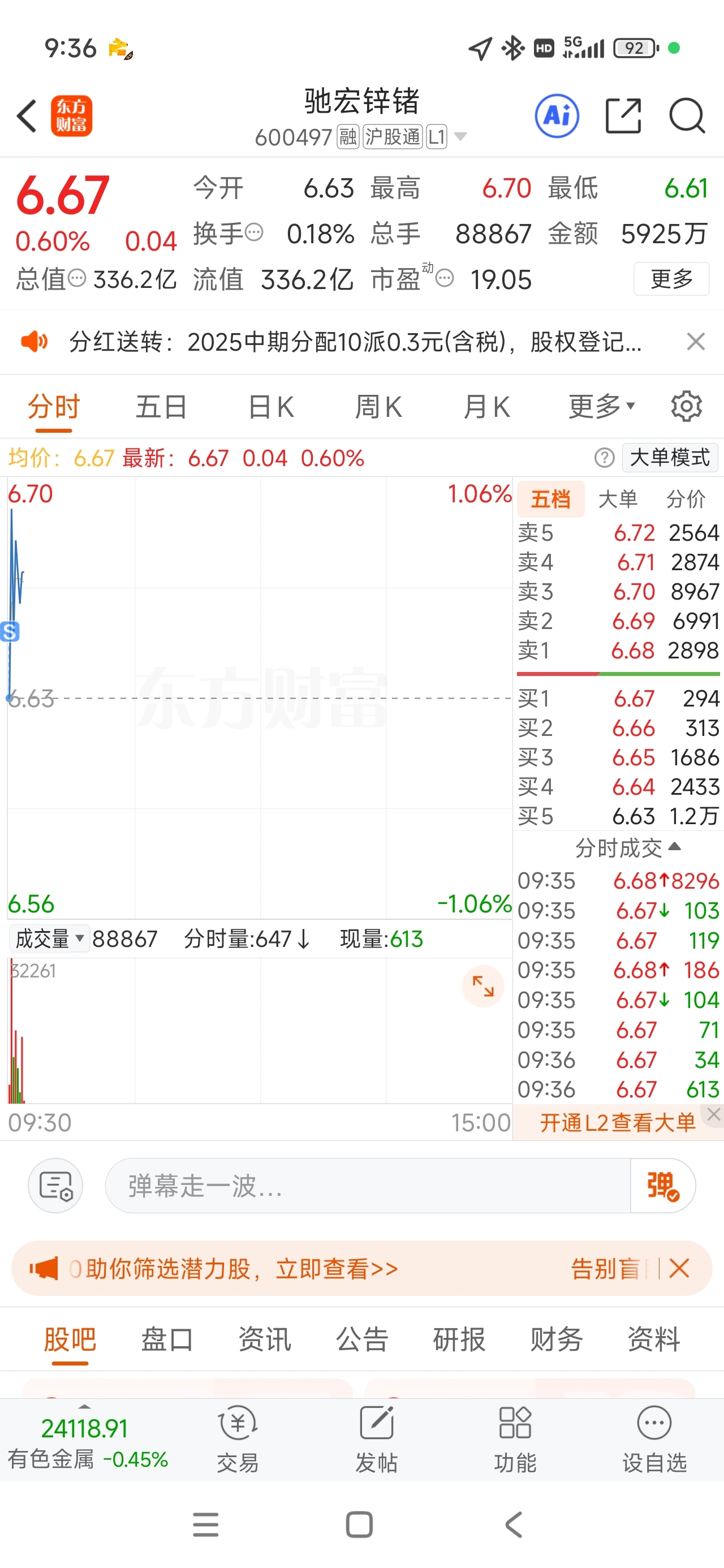 $驰宏锌锗(SH600497)$ 开盘全清,分红完再来!