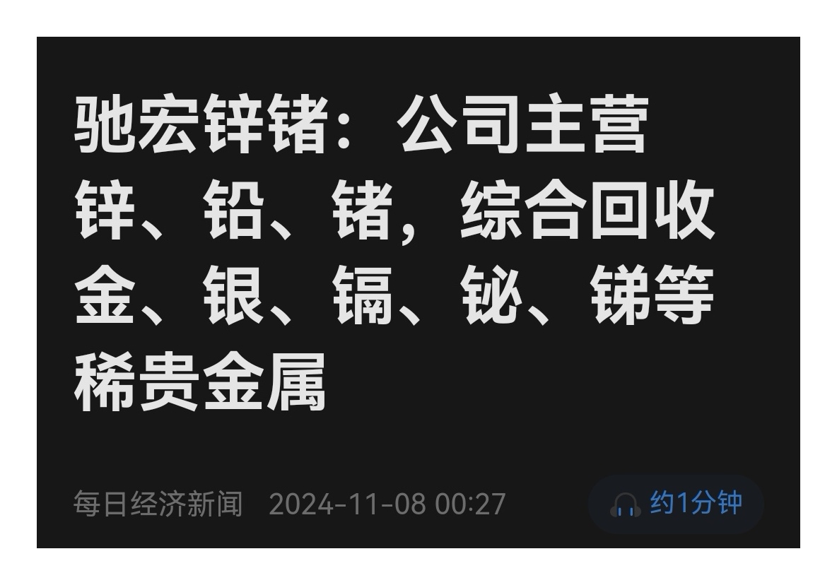 驰宏锌锗参与设立的合资公司:联合打造稀有金属产业链延伸平台,合资公司主营业务为镓、锗、硒、碲、锑、铋、铟、镉等高纯金属、化合物及相关产品。