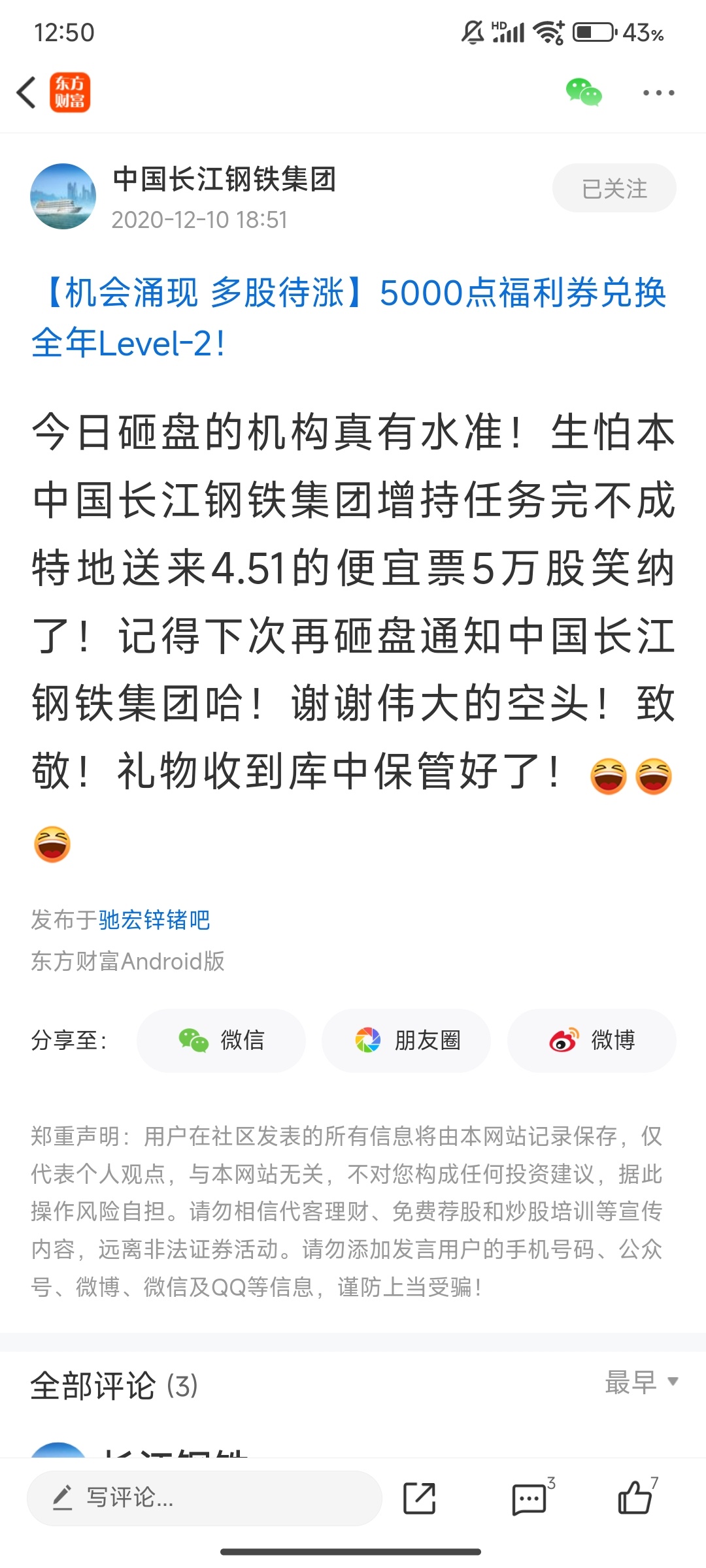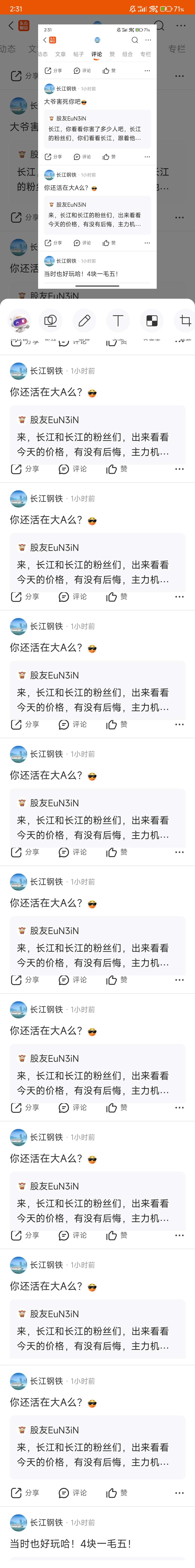 说到这个人山西人也真有意思!派人进入我的群聊中做潜伏,编一堆的谎言在股吧中攻击大爷!你们可以去看一看他发的帖子!我说这个人在大A只能是韭菜你们各位看群信不信?做人不地道!怎么在大A混下去?