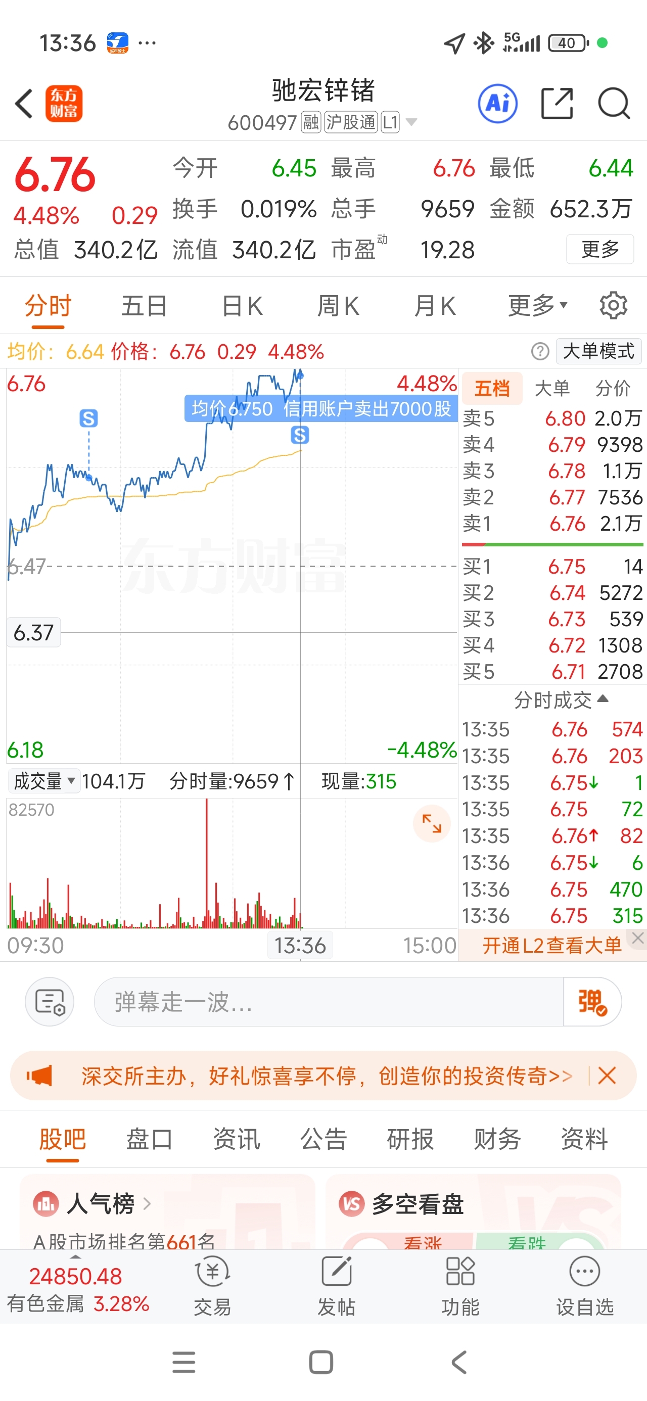$驰宏锌锗(SH600497)$ 主力又被我骗了,先卖了2000股引诱主力拉升,然后我再高位出货,哈哈哈