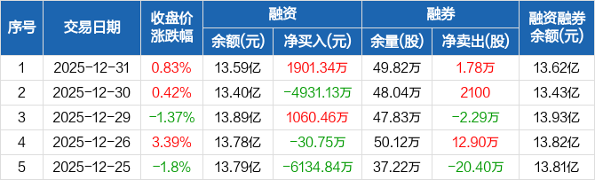 驰宏锌锗:融资净买入1901.34万元,融资余额13.59亿元(12-31)