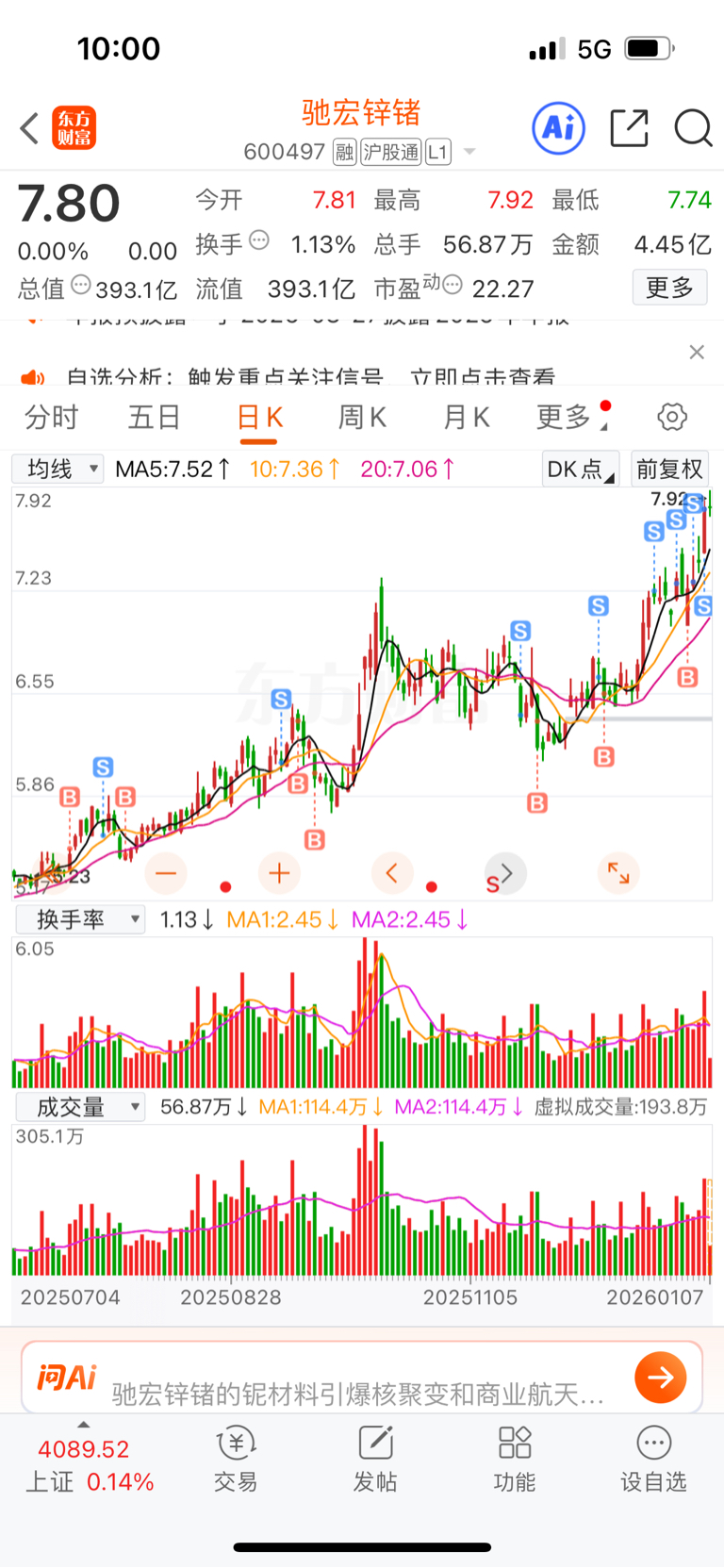 $驰宏锌锗(SH600497)$ 40个点了,先走了,有点恐高
