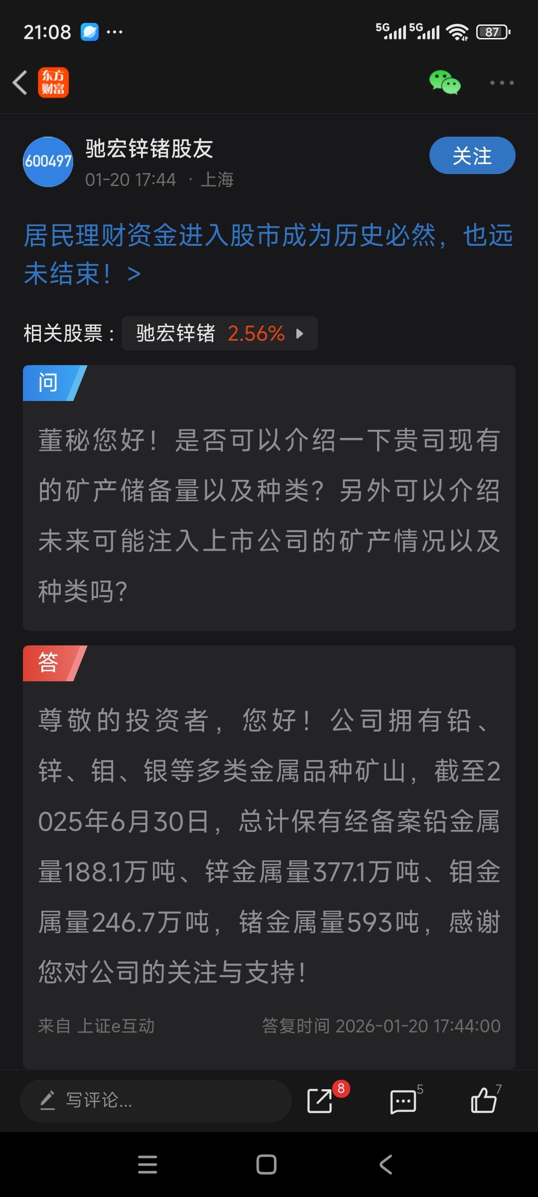 $驰宏锌锗(SH600497)$
