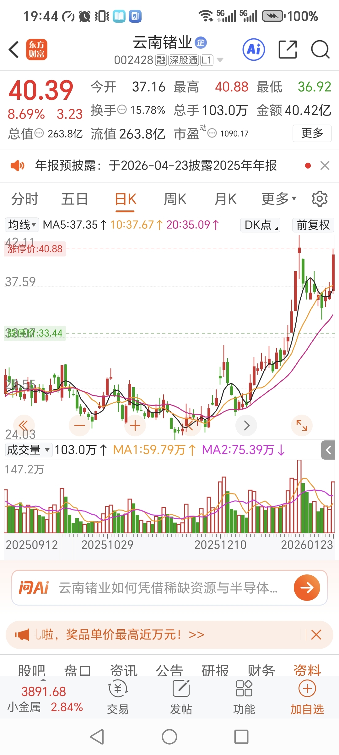 云南锗业都已经40多元了,它才10多元,未来翻几番没问题。