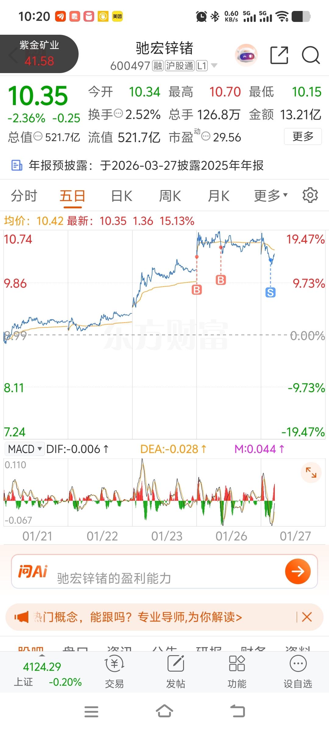 $驰宏锌锗(SH600497)$ 你可以涨了。跟板块的这个