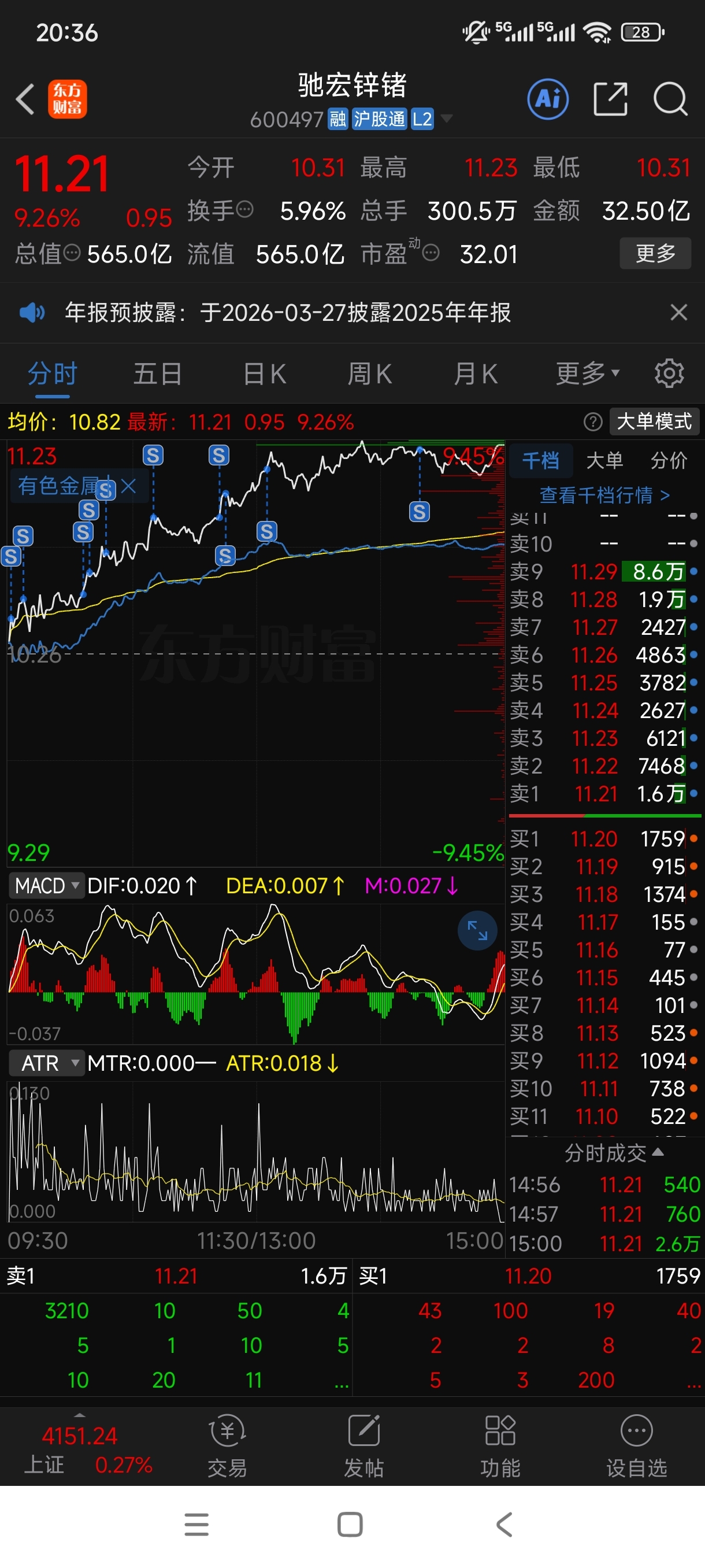 $驰宏锌锗(SH600497)$ 问问各位老铁,我该怎么唱空阿驰,才有机会明天低开大跌,买回来一些仓位???