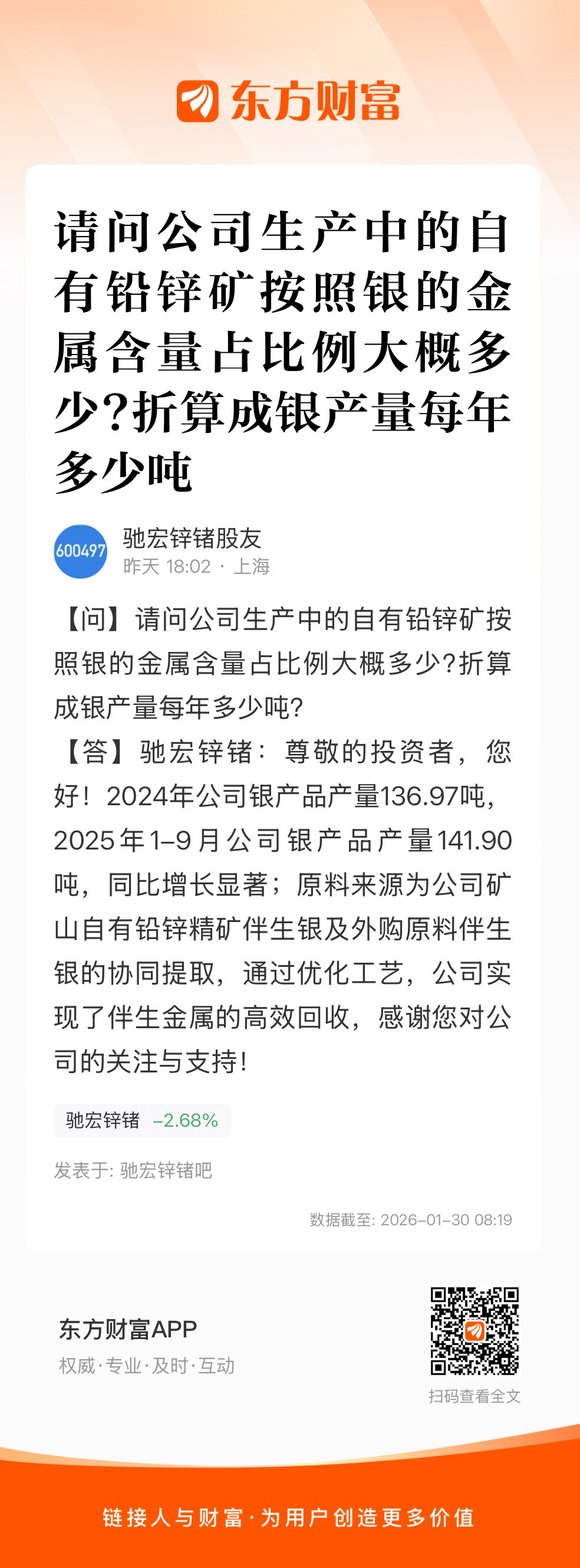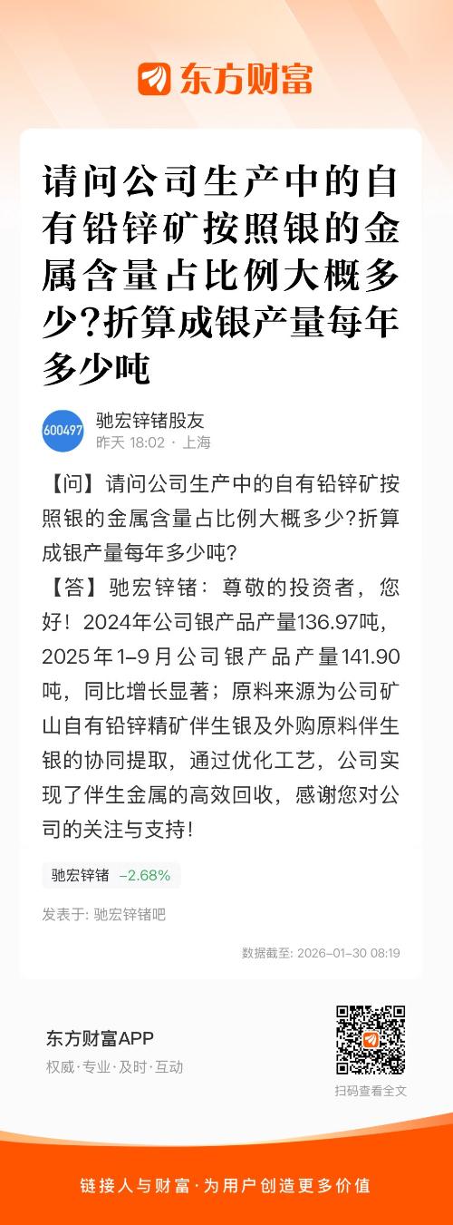 还未被大众知晓的宝藏银矿公司$驰宏锌锗(SH600497)$ ,这个公司的银业务属于在铅锌矿中的伴生银和治练贵金属回收银,今年银数量不容小觑,甚至会大大的惊喜。今年开始投产后,自家矿山银和回收银会让这家公司的银业务开始爆发,对比其他拥有矿山银业务和做银治练业务的公司,股价还没有涨起来。