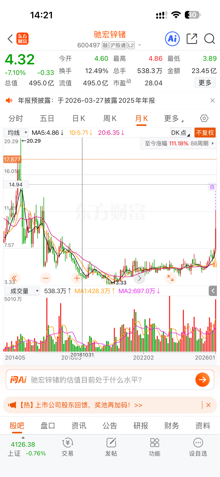$驰宏锌锗(SH600497)$ 今天买的三手割不了,都卖了