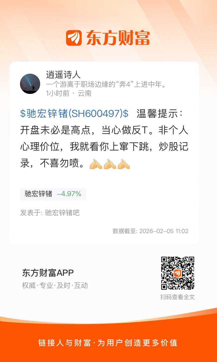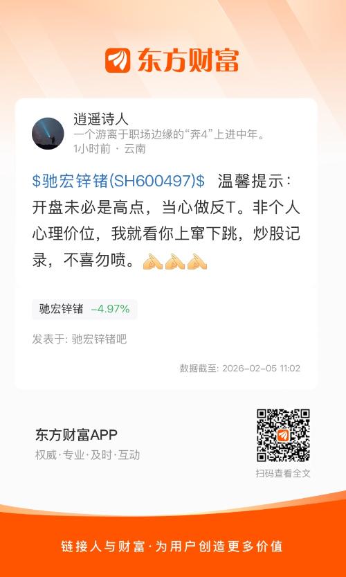 上午行情波动较大,但我没有操作。作为普通小散户,我清楚自己经验尚浅,也感谢大家的指教。我始终看好这只股票,主要基于两点:一是我目前持仓成本较高,选择坚守;二是公司具备实实在在的矿产资源优势,自并入中铝集团以来战略布局持续优化,结合近期动态与“十五五”规划方向,我认为其转型升级与长期成长路径清晰。短期波动我理解为市场情绪与资金层面的正常调整,包括部分获利盘了结与短线资金流动。一旦市场环境回暖或行业景气度回升,相信其基本面支撑将逐渐体现。我会继续持有,并在这个过程中持续学习、提升认知。也欢迎理性交流,分享观点。不喜勿喷。