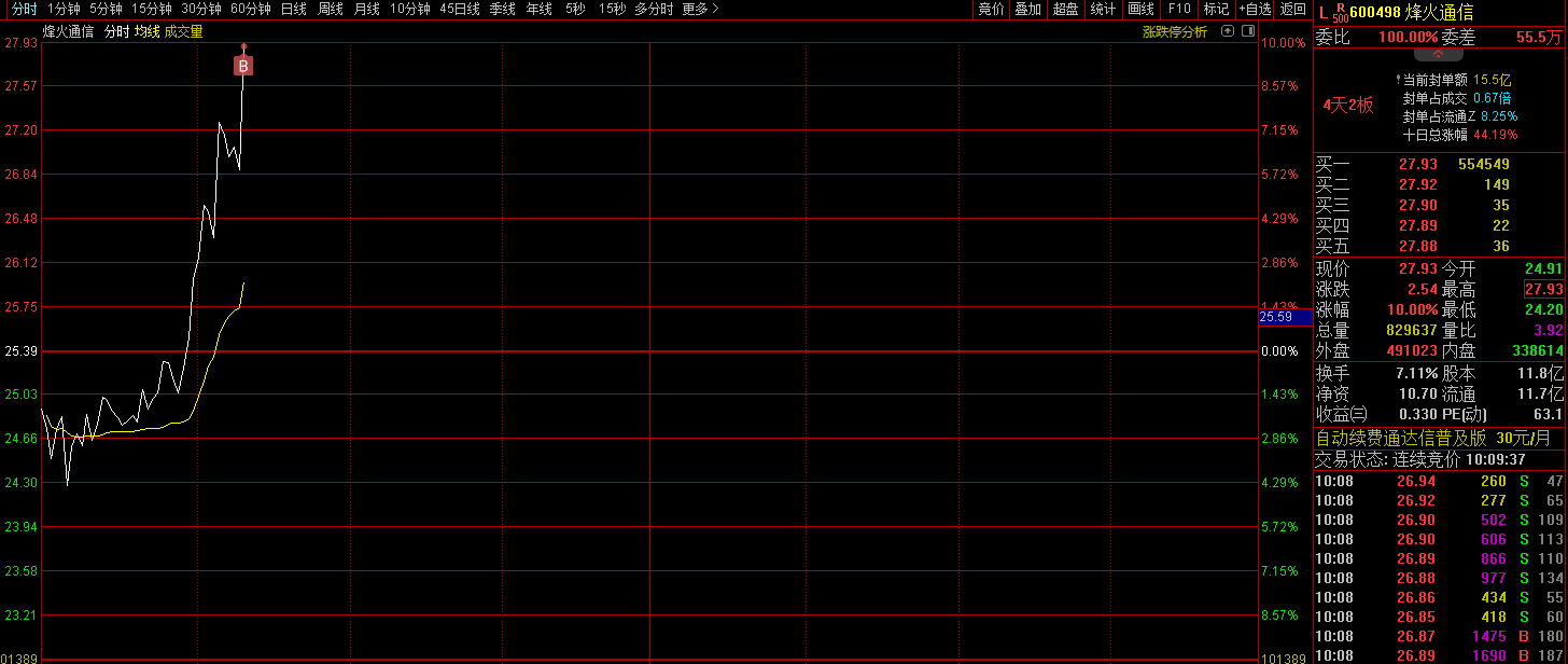 烽火通信 打板了2月19日