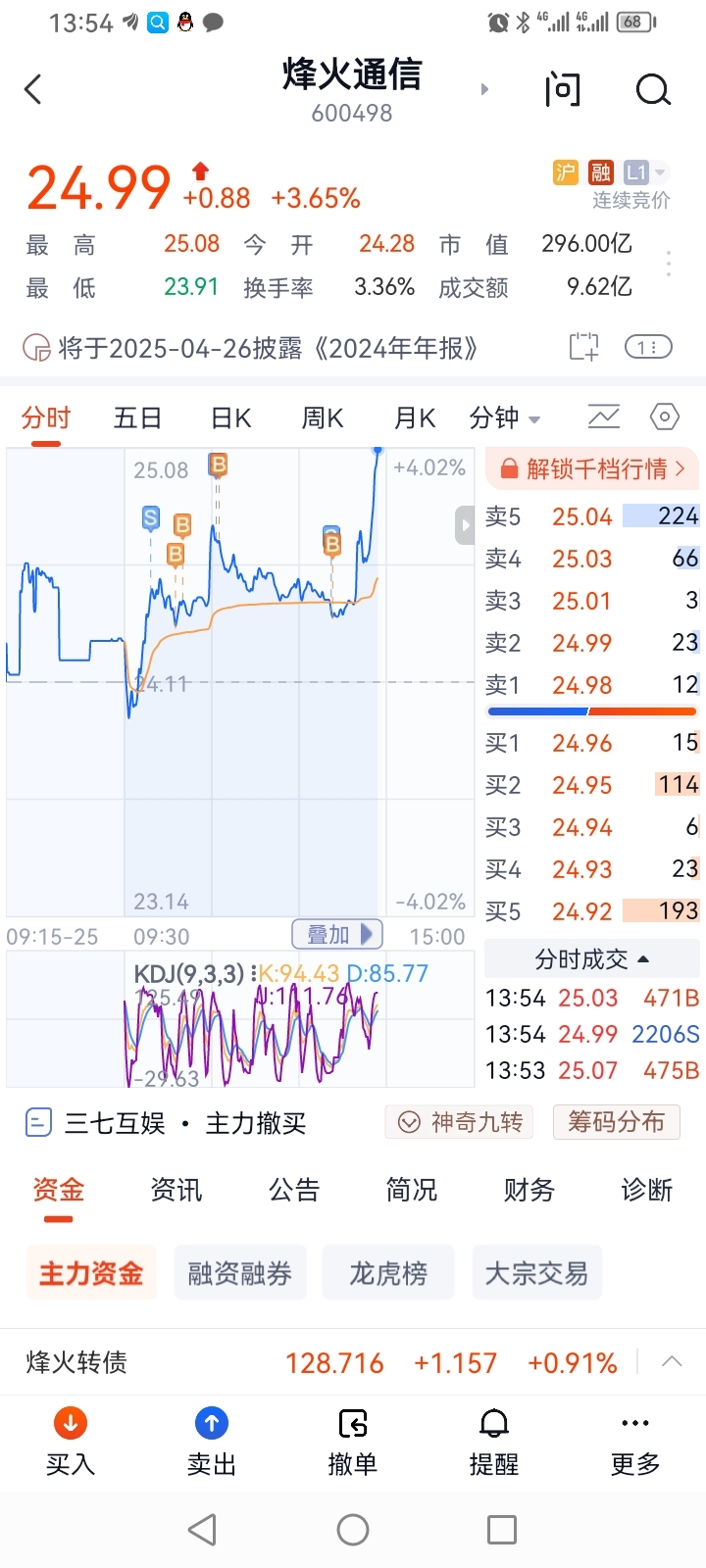 三连板加油下个千亿市值$烽火通信(SH600498)$