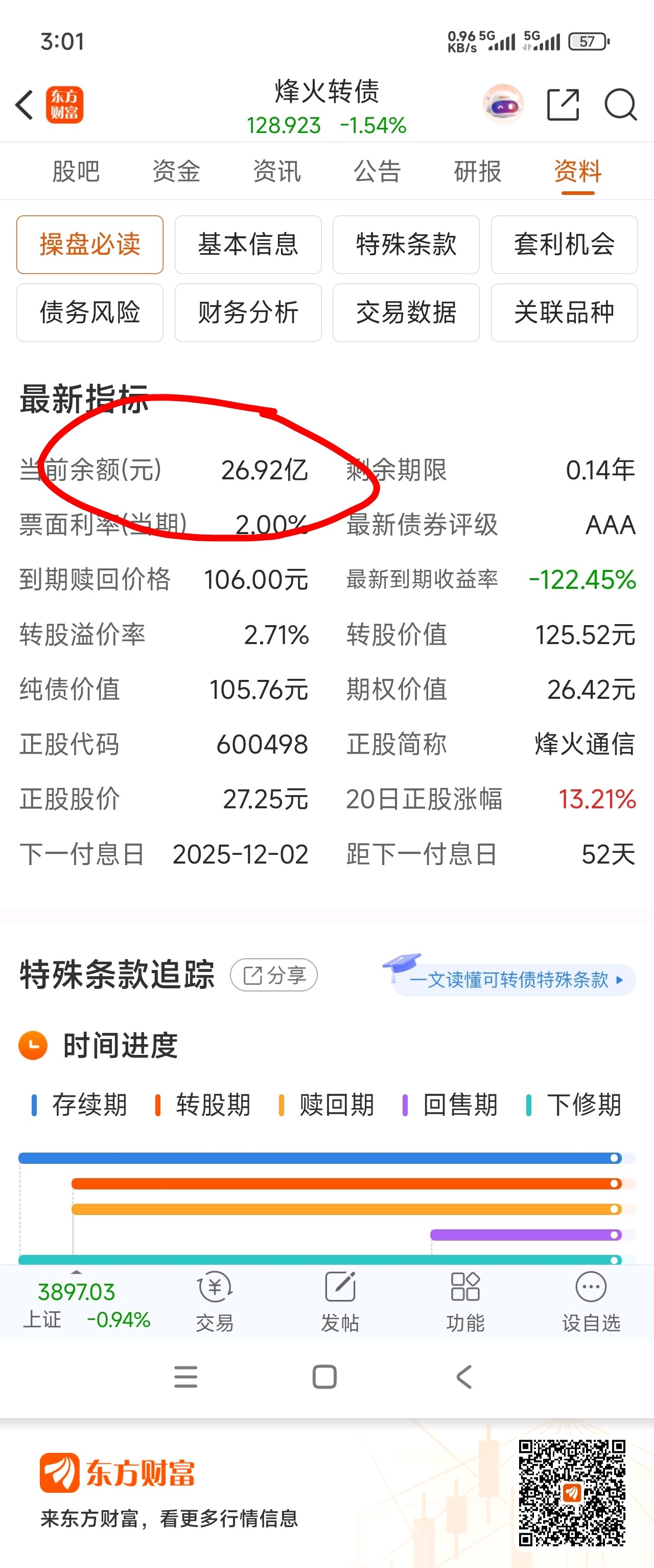 $烽火通信(SH600498)$ 大概率转股不强赎目前已经转股接近4亿了强赎的目的就是转股现在已经在进行中。。。