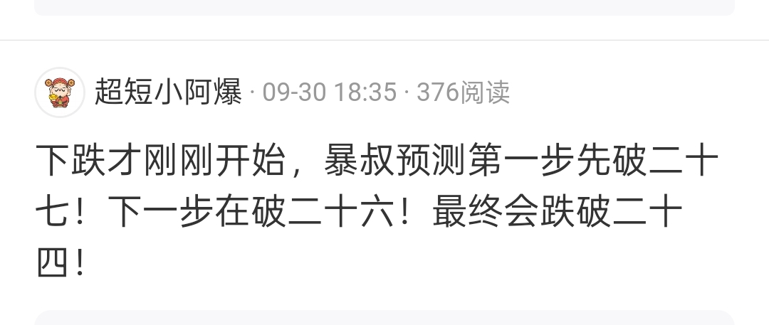温馨提示: 1.根据《证券法》规定,禁止编造、传播虚假信息或者误导性信息,扰乱证券市场;2.用户在本社区发表的所有资料、言论等仅代表个人观点,与本网站立场无关,不对您构成任何投资建议。用户应基于自己的独立判断,自行决定证券投资并承担相应风险。《东方财富社区管理规定》