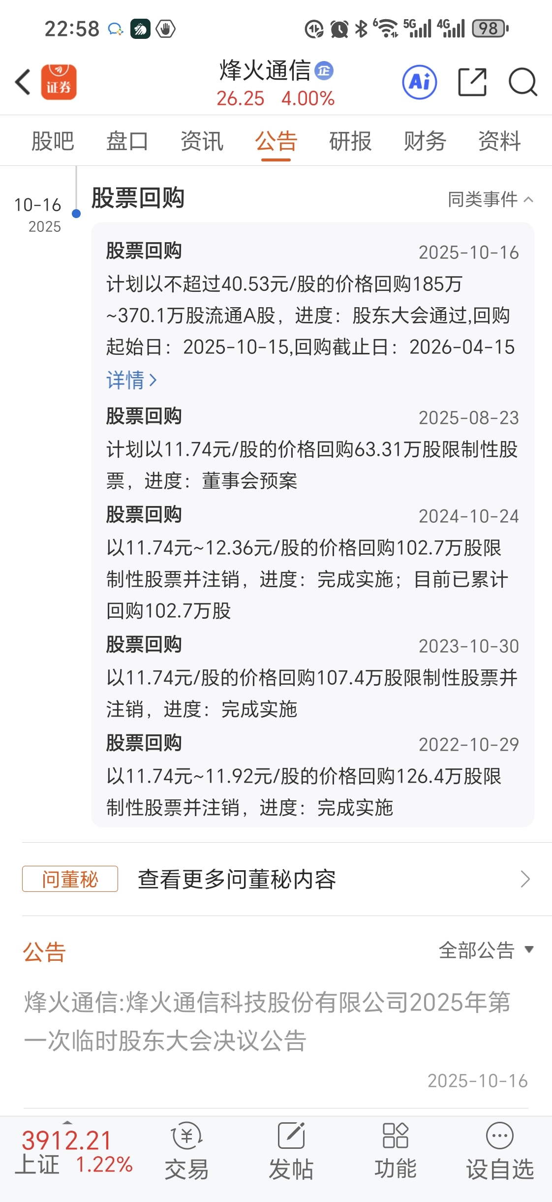 $烽火通信(SH600498)$ 原来烽火通信回购注销成性