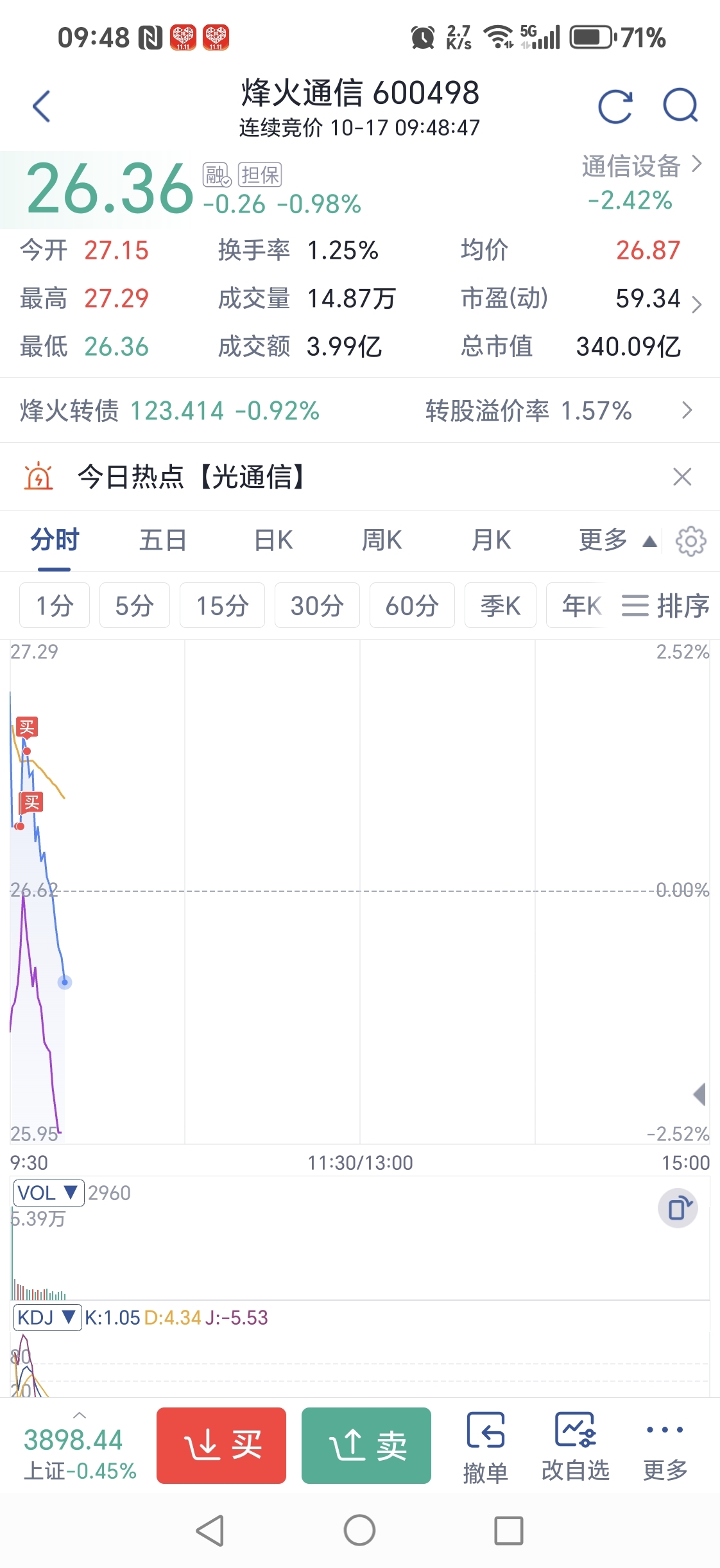 $烽火通信(SH600498)$ 挑来挑去,位置低,金叉,又有利好,早盘进来,就这么玩吗?