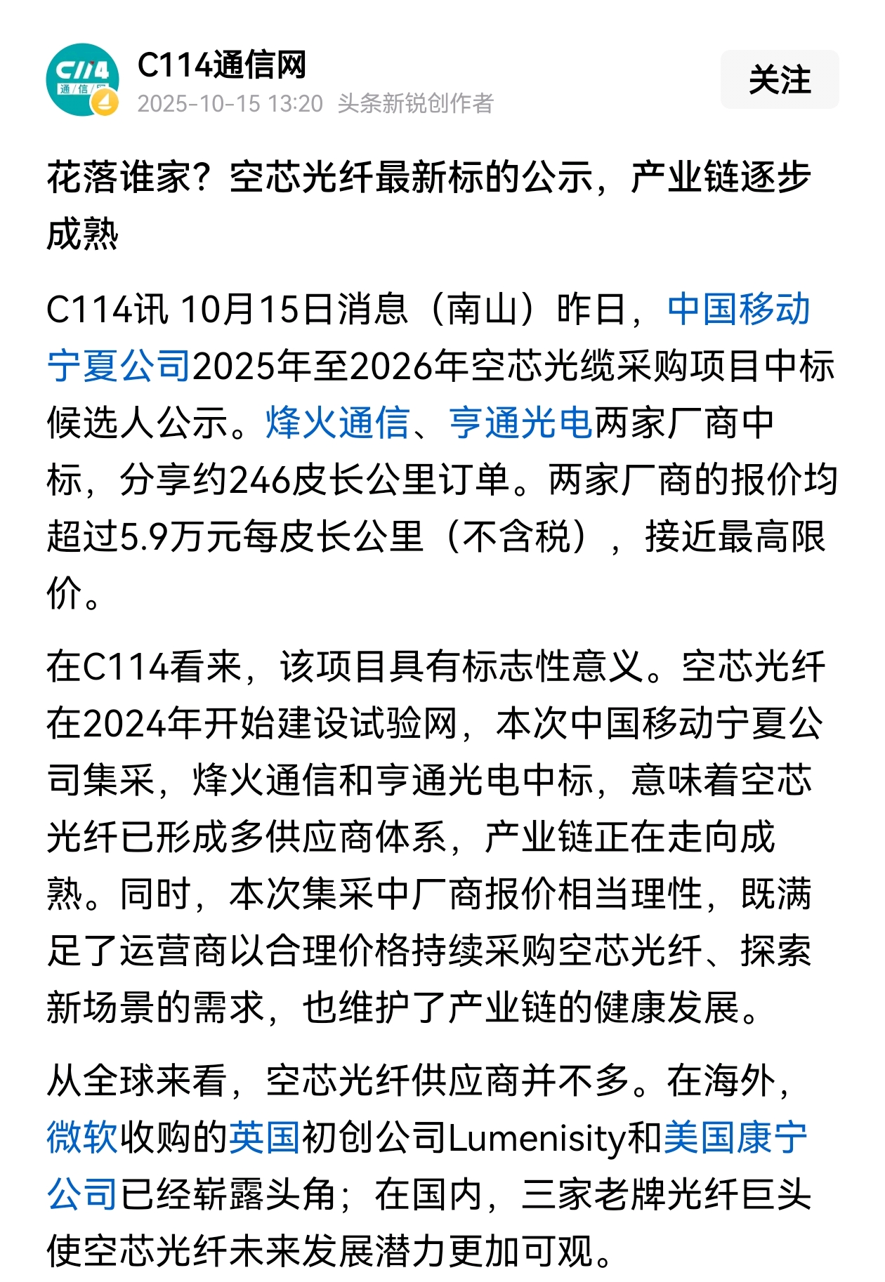 $烽火通信(SH600498)$ 空心光纤是Rubin架构数据中心互联的关键增量有分析指出,在英伟达Rubin GPU架构的“Scale-across”方案中,空心光纤占据了80%-85%的增量市场份额,其价值量高于相干光模块和交换机,是确定性最强的部分。
