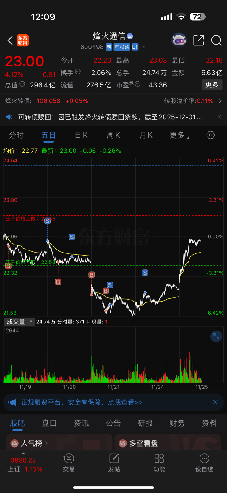 $烽火通信(SH600498)$ 昨天割肉了,你就涨,太可惜了,有本事继续涨,我绝对不眼红