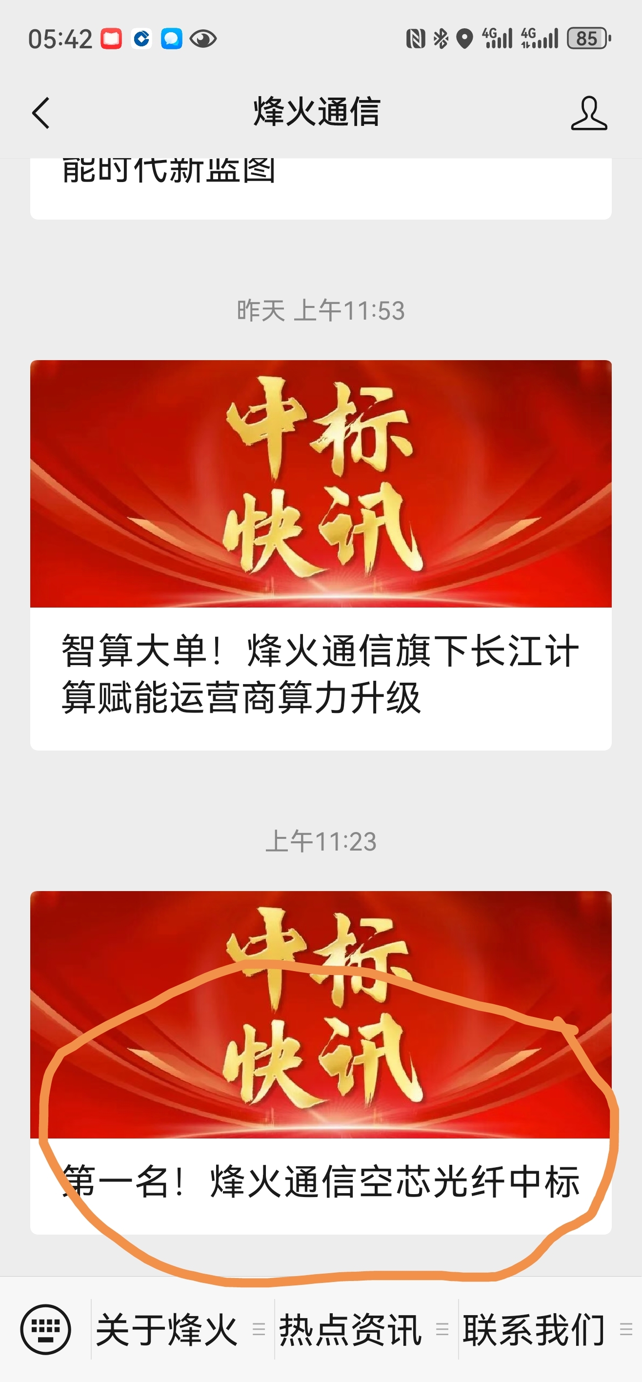 $烽火通信(SH600498)$ 烽火空心光纤第一名中标,现在空心光纤开始放量,以后业绩大增