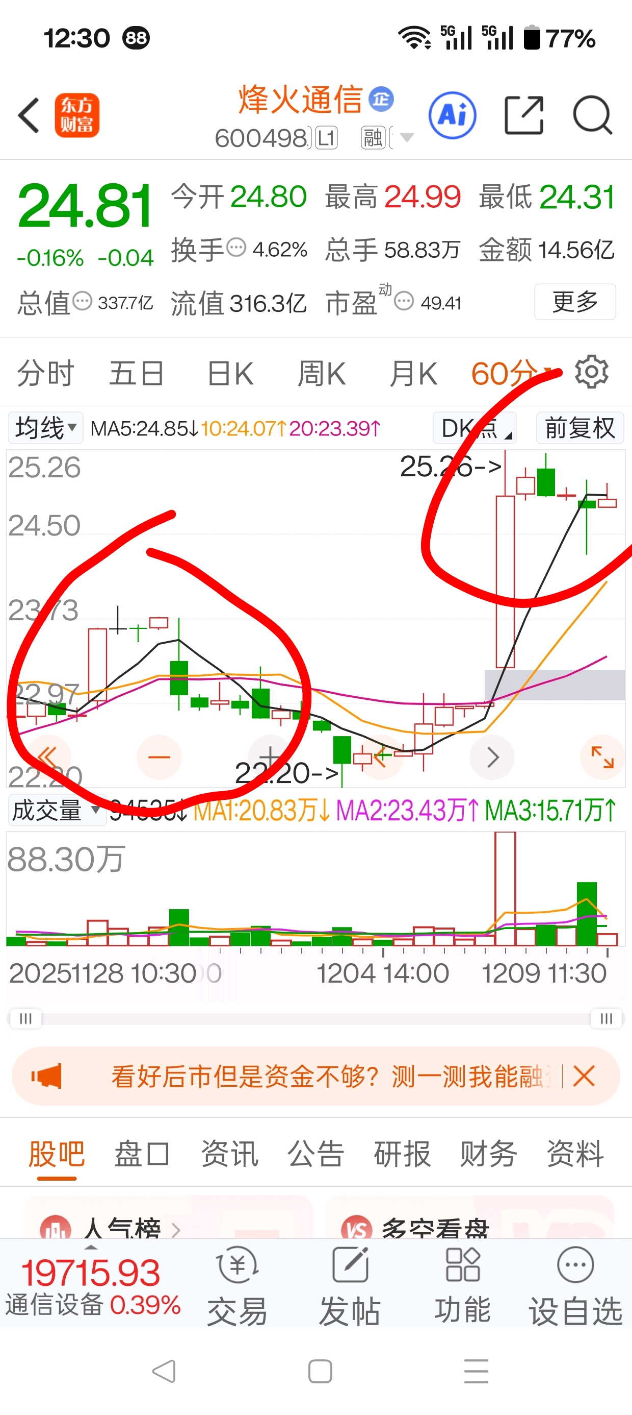 $烽火通信(SH600498)$ 九盘必跌。目前盘了五盘了。上一次也是最后大跌踩到底。下午开盘卖出然后再买入。