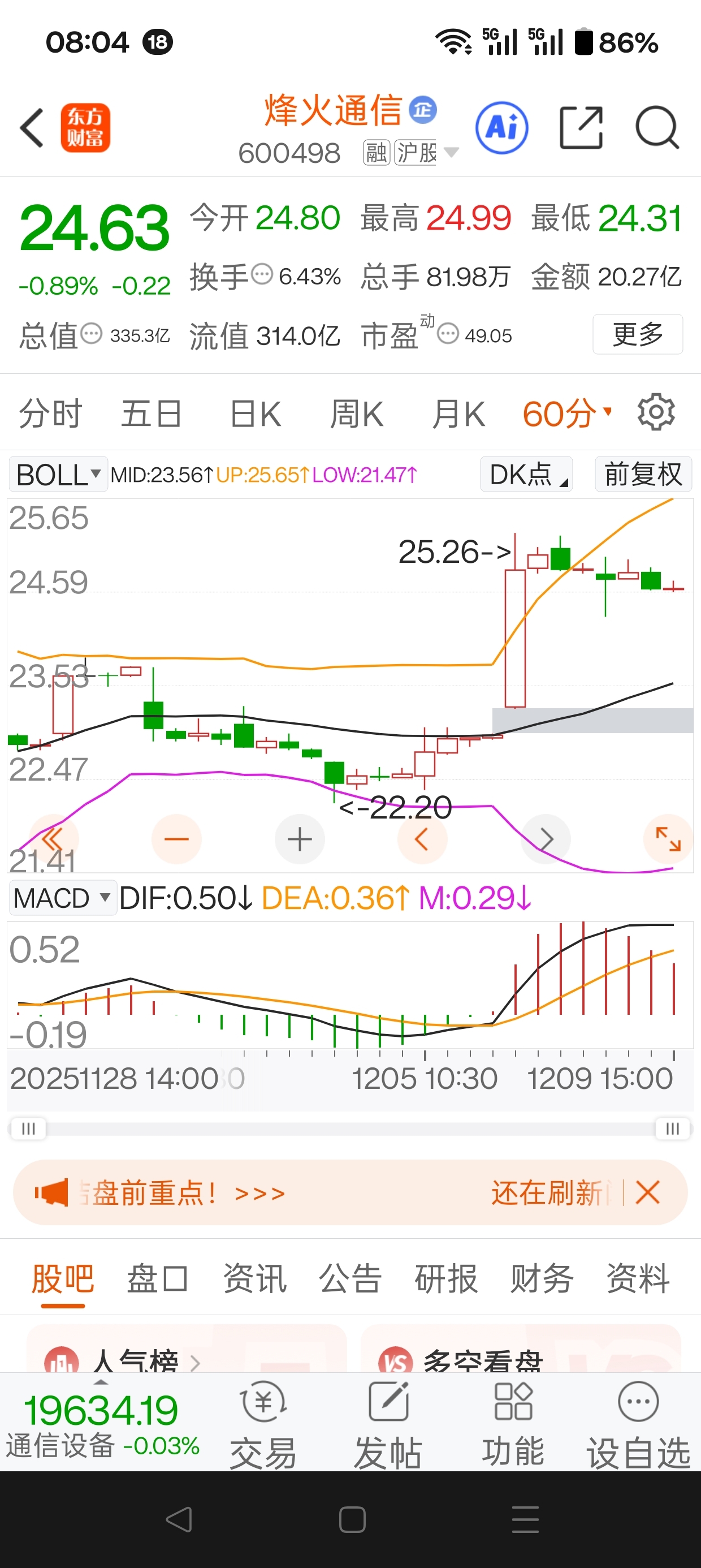 $烽火通信(SH600498)$ 九盘必跌,目前盘了七盘了。