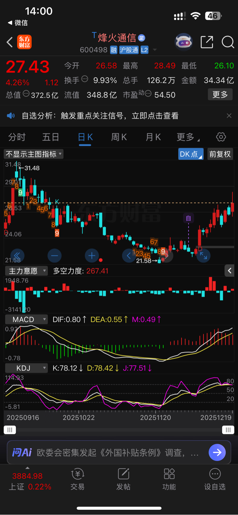 $烽火通信(SH600498)$ 要入在底部我提示时就该入。现在波段快到压力位。不入。