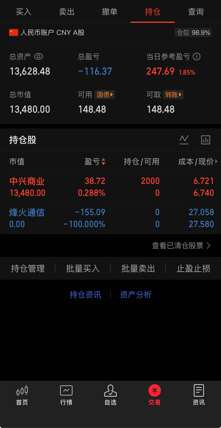 $烽火通信(SH600498)$ 烽火通信卖完了,不过赚钱走人没啥不对的,周末12甲发射,成功了周一高开,不成功就是利空没必要去赌,先走为妙反正赚到钱了,中兴商业我感觉应该有点东西就先买了#收盘点评# #炒股日记# #复盘记录#