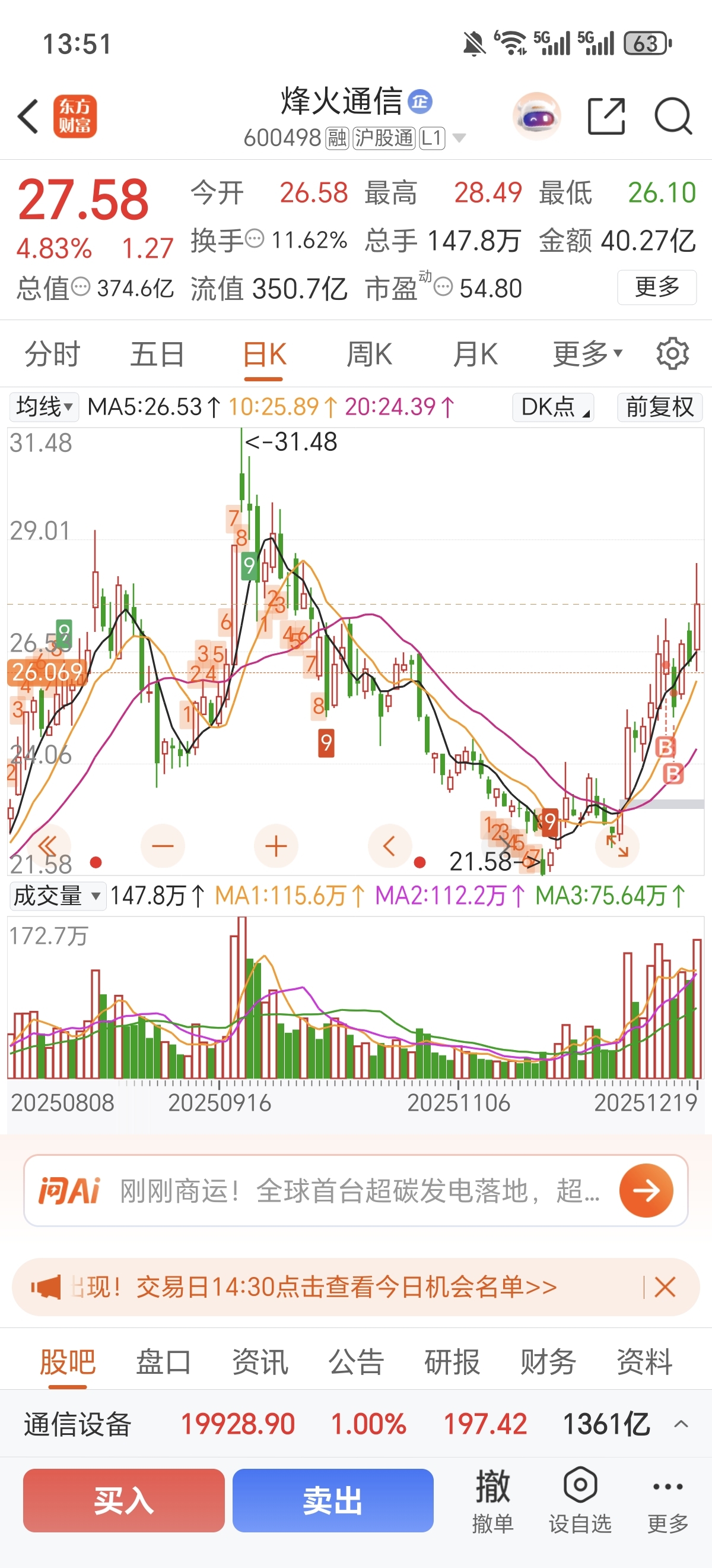 $烽火通信(SH600498)$ 还是觉得下周会上来,跌了那么长时间了,不可能只拉这么点