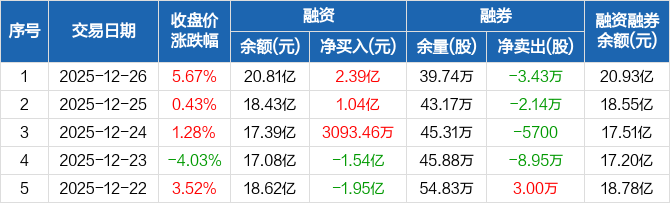 烽火通信:融资余额20.81亿元,创历史新高(12-26)