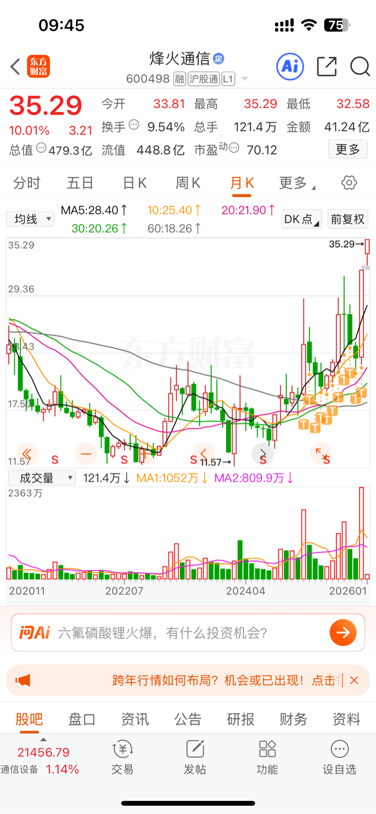 $烽火通信(SH600498)$ 守了一年,倒在了最后,赚是赚了,比我亏还难受