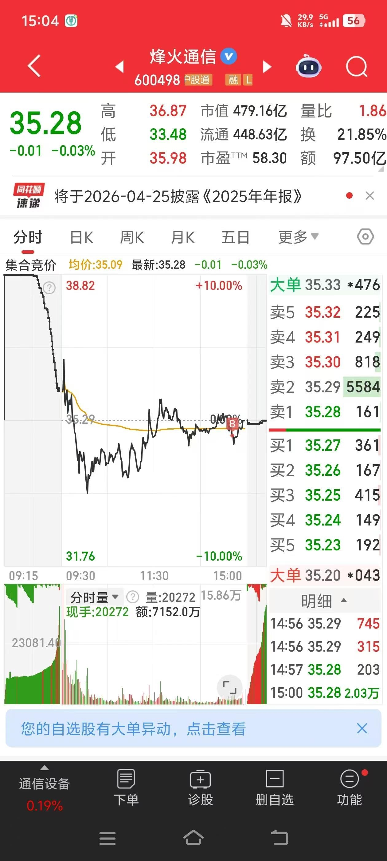 $烽火通信(SH600498)$ 市场一片欣欣向荣,完全不参与有点说不过去!于是尾盘低吸了一笔!(盘后个人投资记录,切勿模仿)
