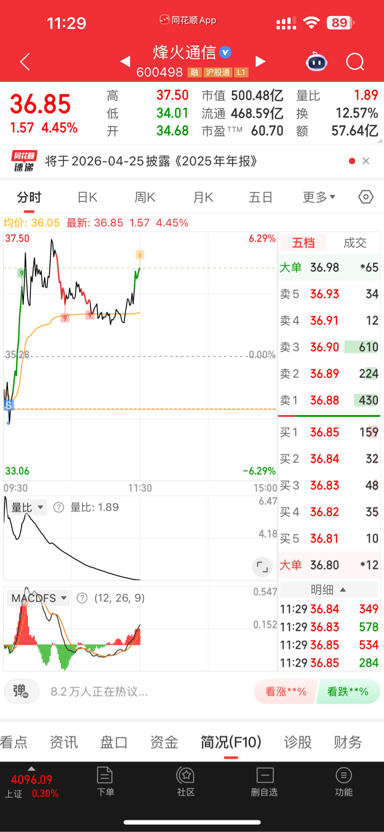 $烽火通信(SH600498)$