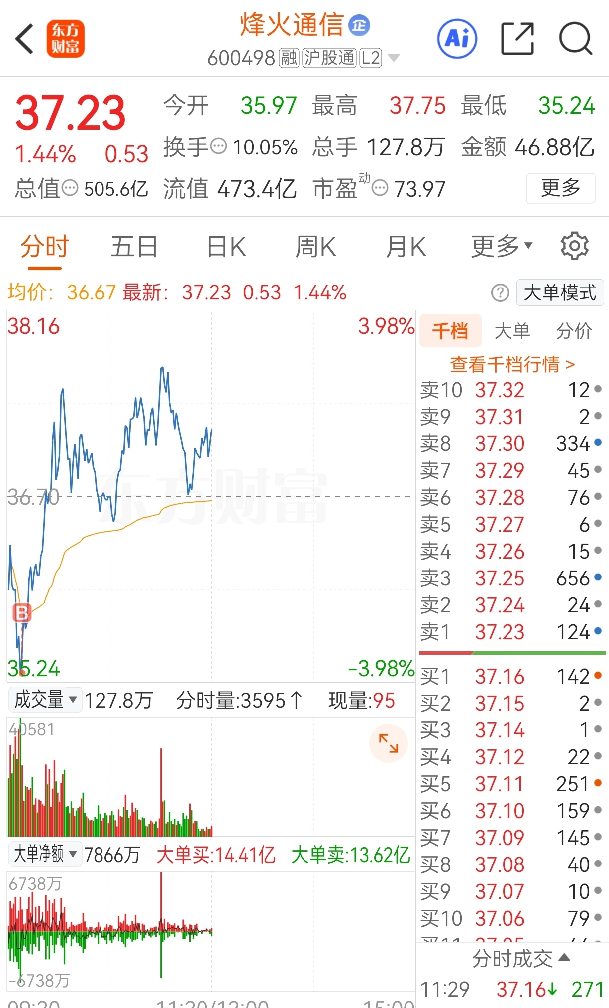 $烽火通信(SH600498)$ 昨天选了两只票,烽火和航机电,可惜航机电一下拉起来就没追了,进了烽火两层仓
