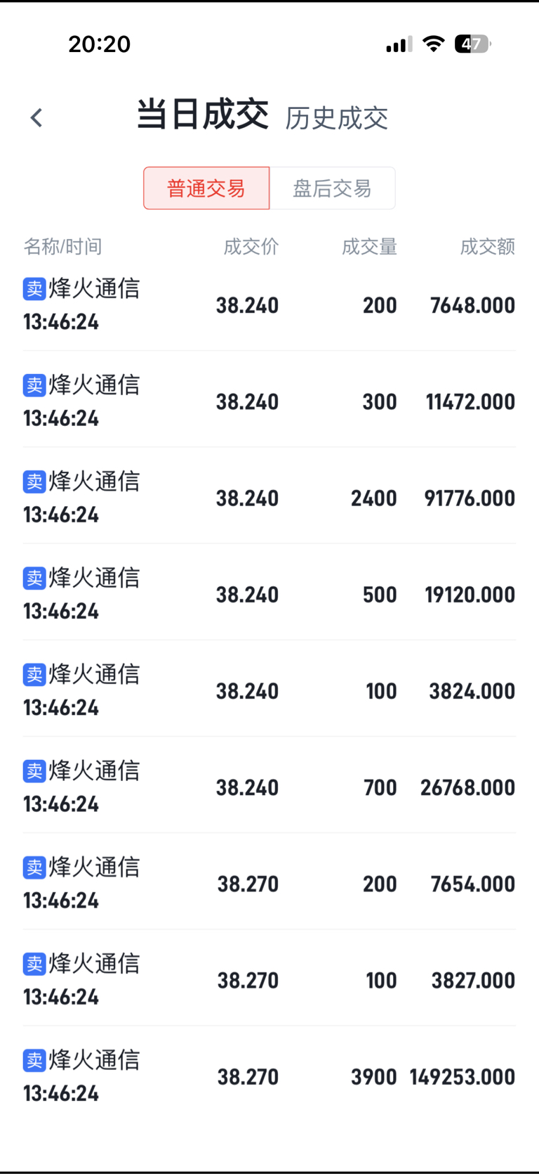 $烽火通信(SH600498)$ 最近一个月卖得最好的一次