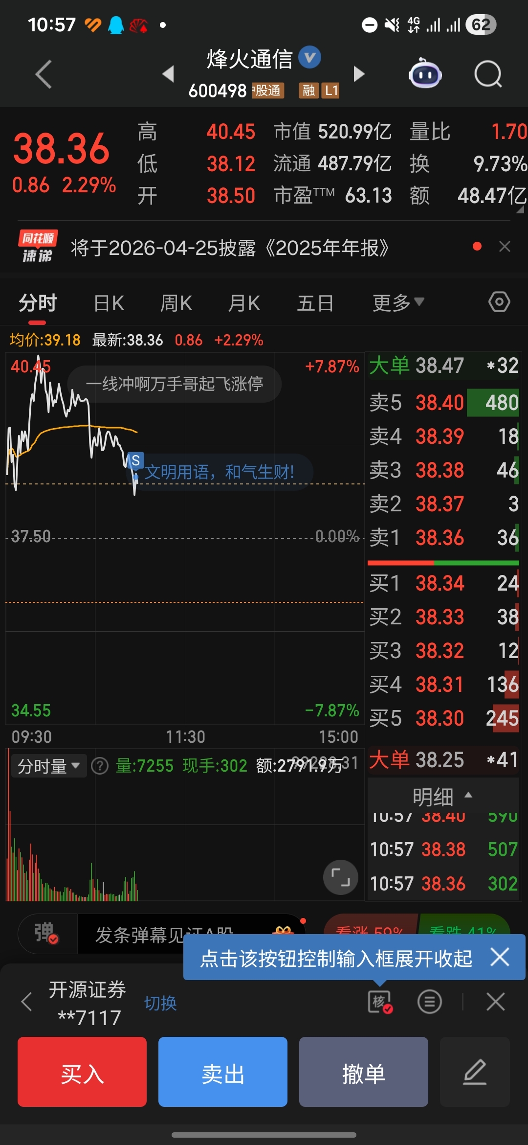 $烽火通信(SH600498)$ 核了,一键清仓,注意风险,往核心去,两天5个点,小肉