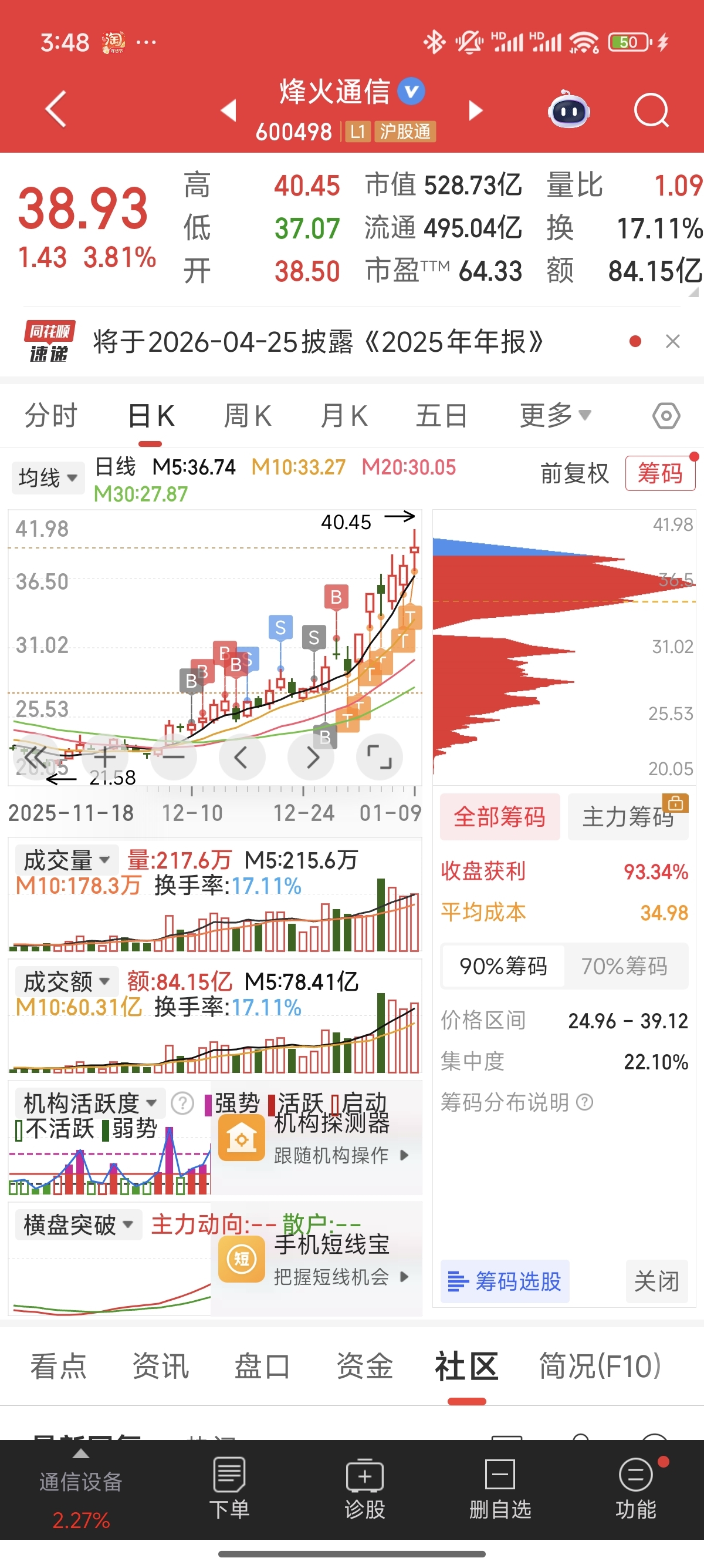 $烽火通信(SH600498)$ 这股我做了好多年,太清楚他股性,12.31和新年第一天的连板简直破天荒的连板本来这两天是该减仓的位置了,架不住走的太强,反而变成高位加仓,有筹码的要稀筹,志在高远。2026的烽火已经不一样了,这次会借商业航天涨得爹妈都不认识,已经活在上涨的恐惧中了