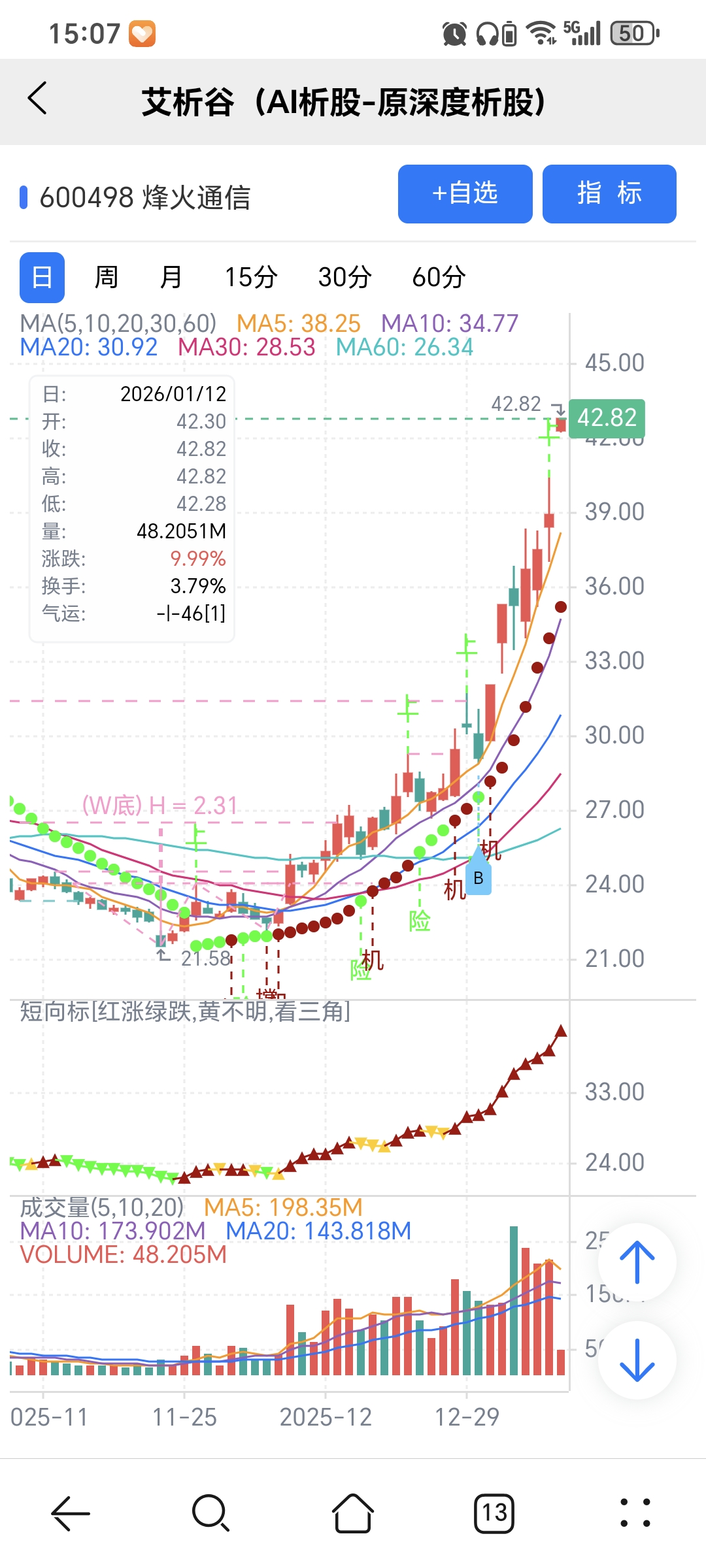 AI模型选股,量化指标识别关键点,简单技术分析确定买卖点,结合量化和人工综合运用,才能有优势。 烽火通信